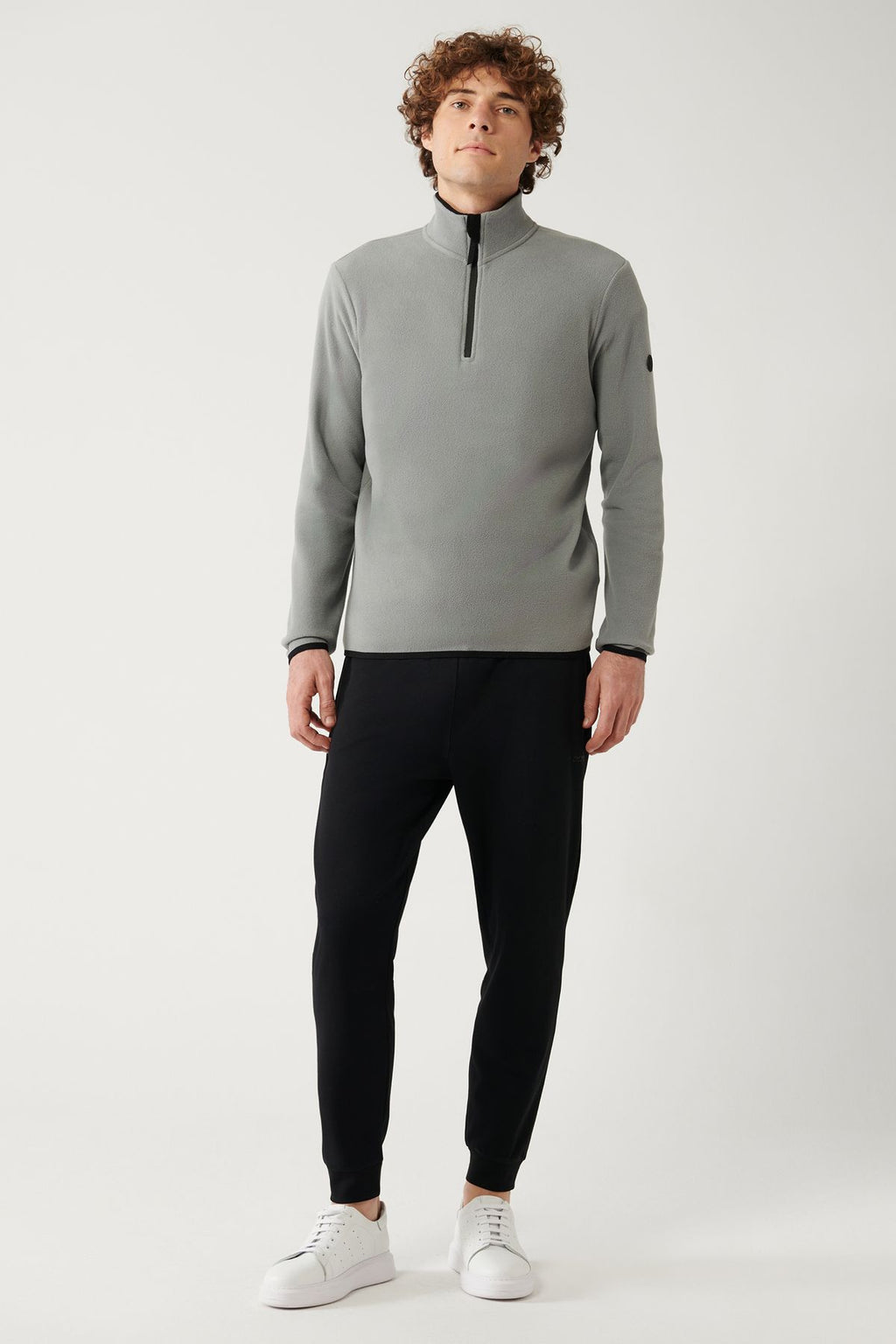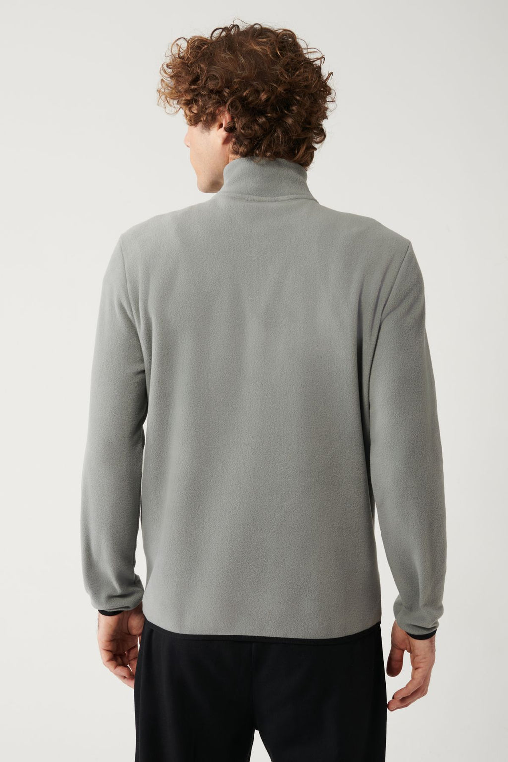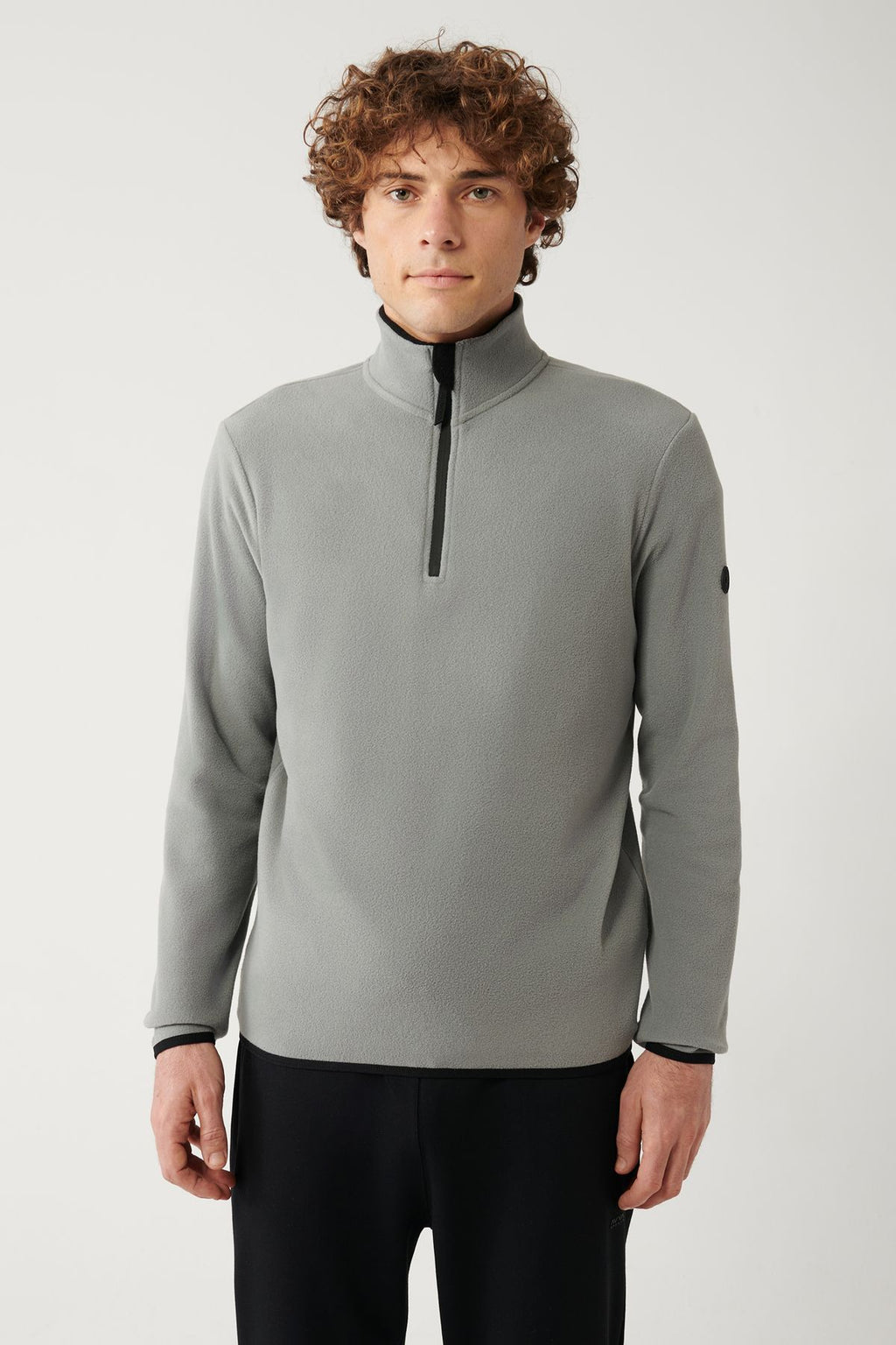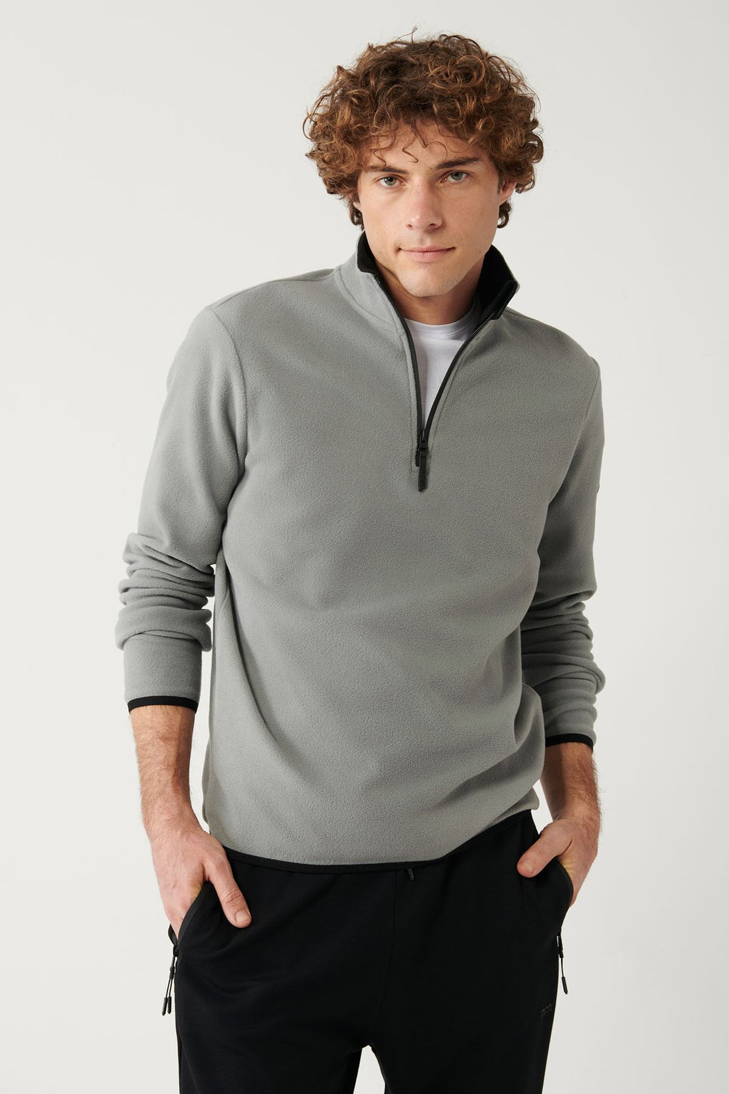 Men's gray cold -resistant half -zipper with perpendicular collar polar sweatshirt E001068