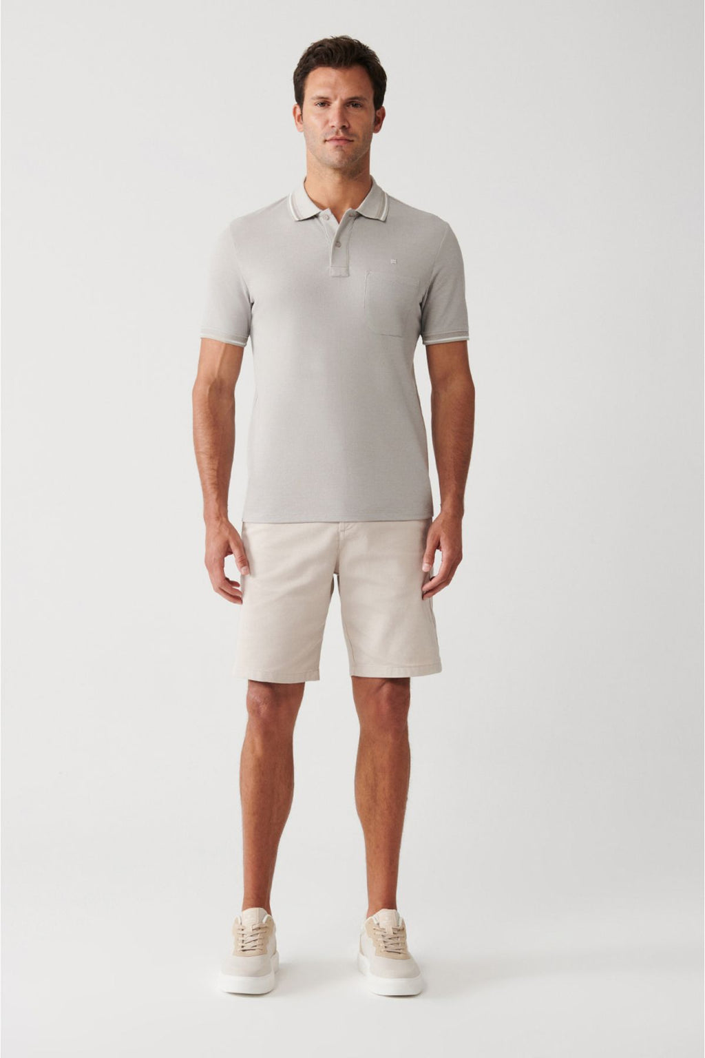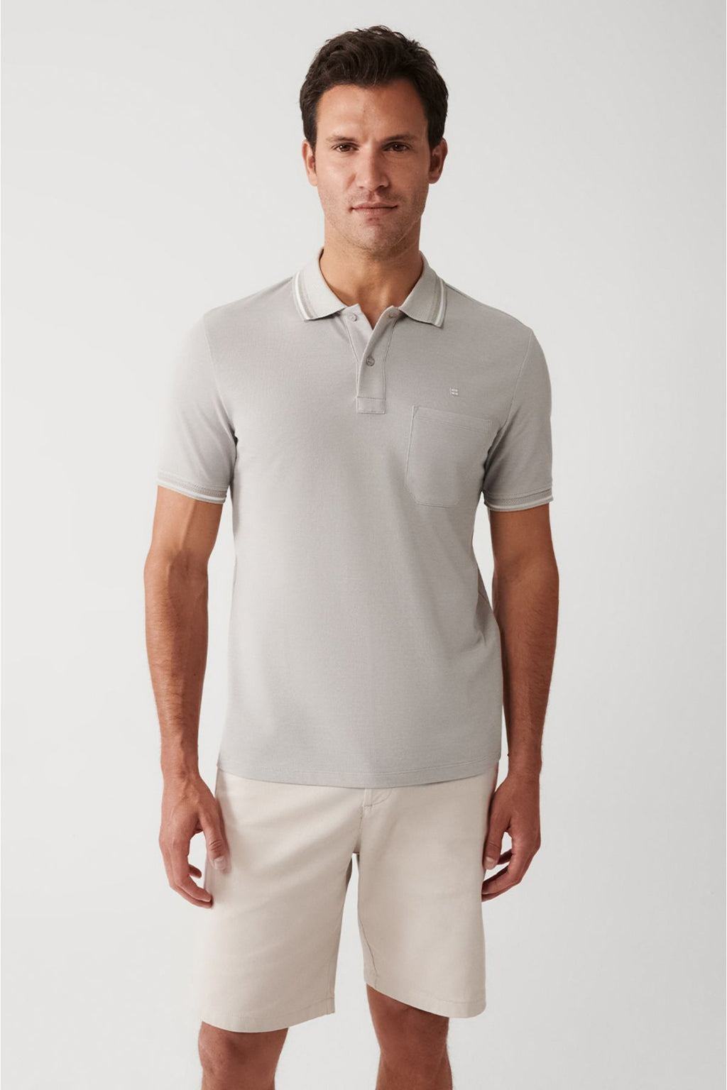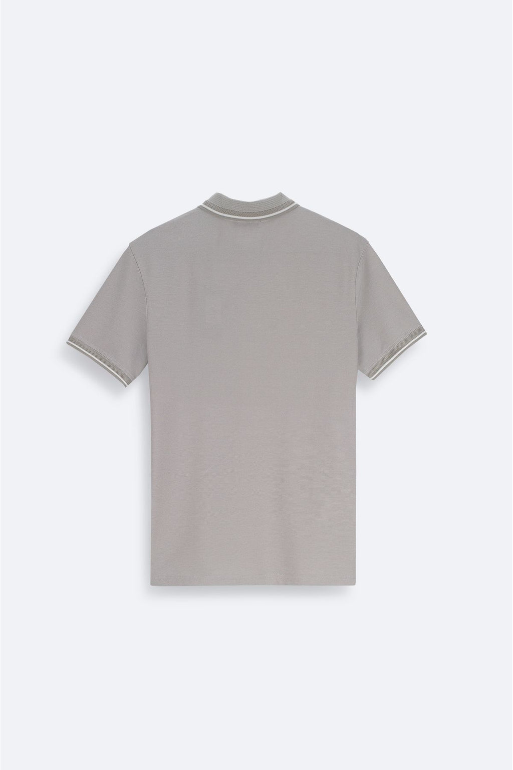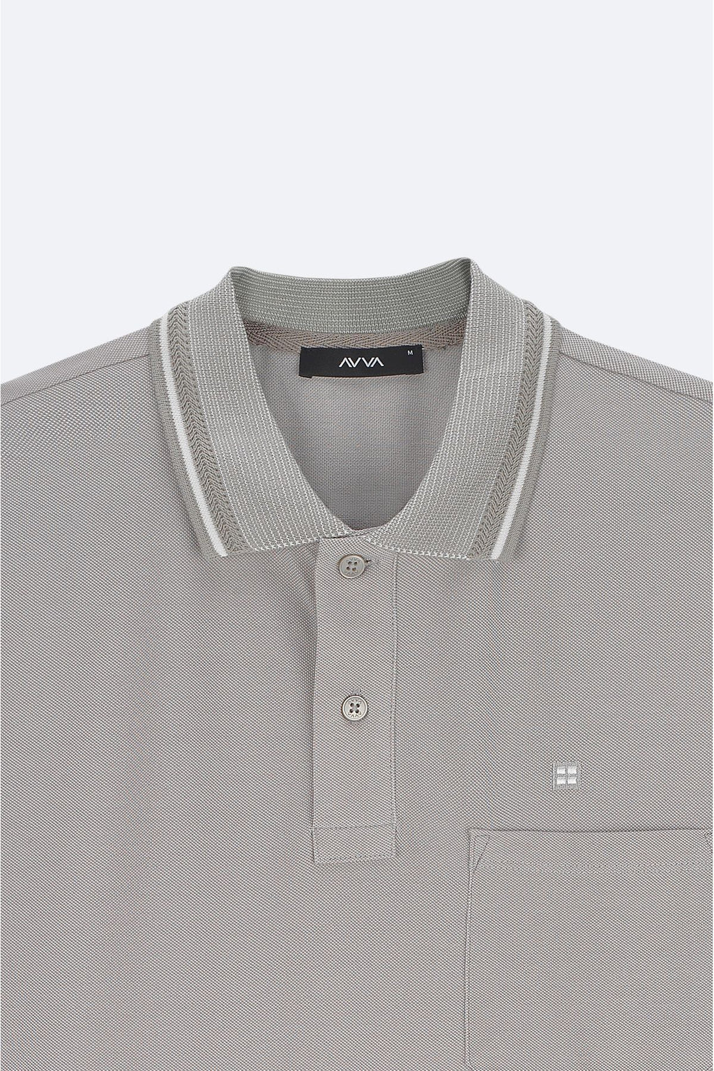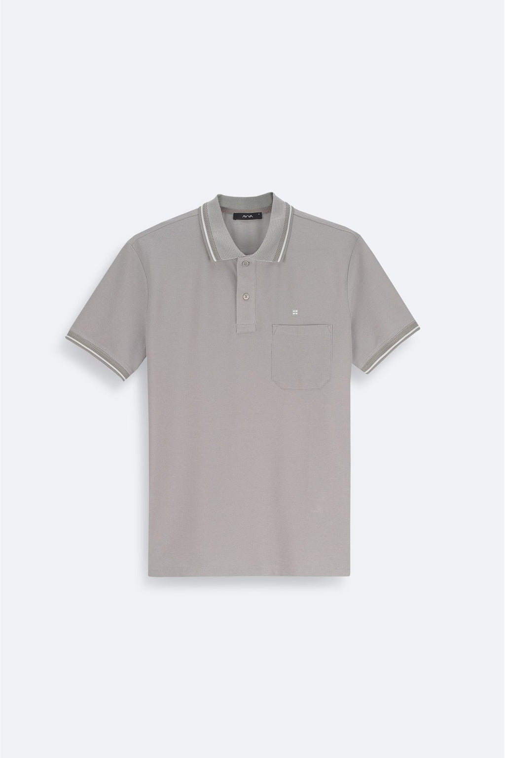 Men's Gray Curlled Neck Pocket 2 Button Polo Yaka T-shirt E001031