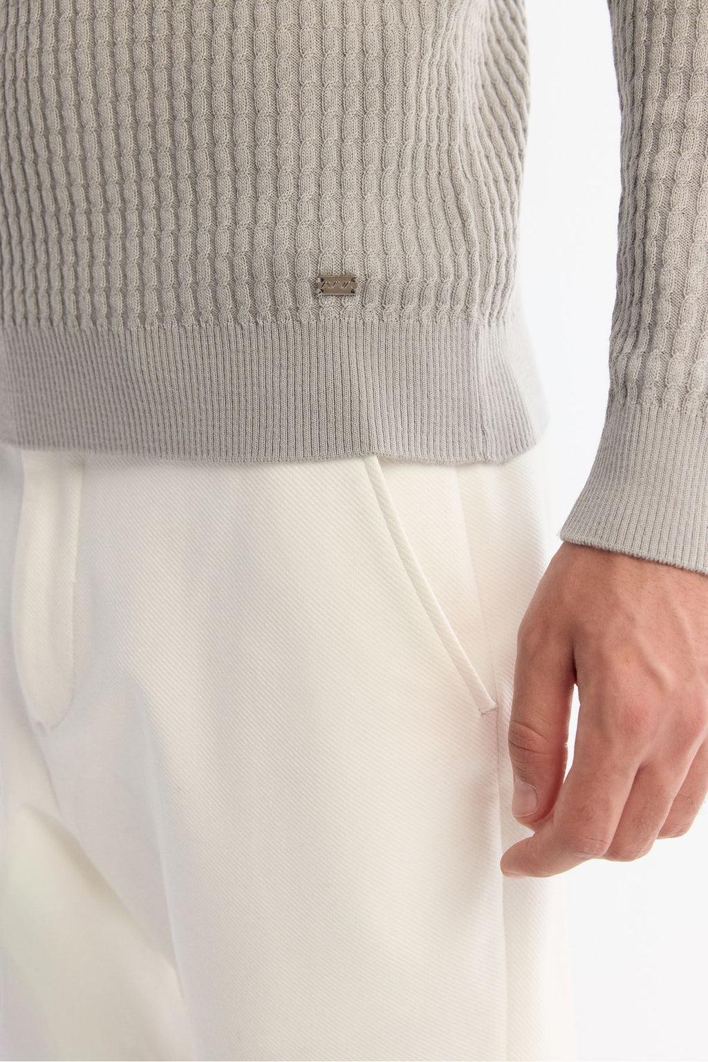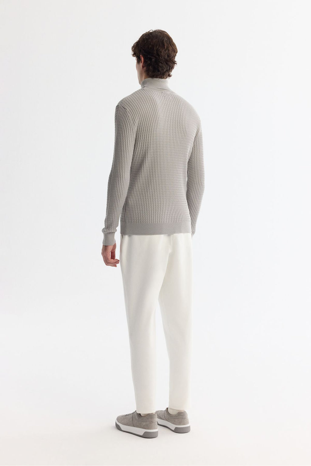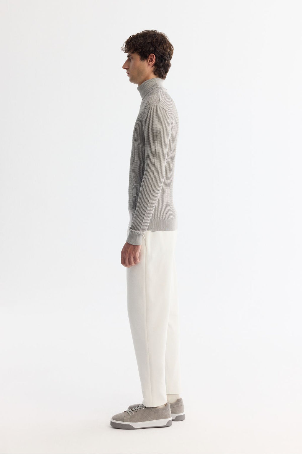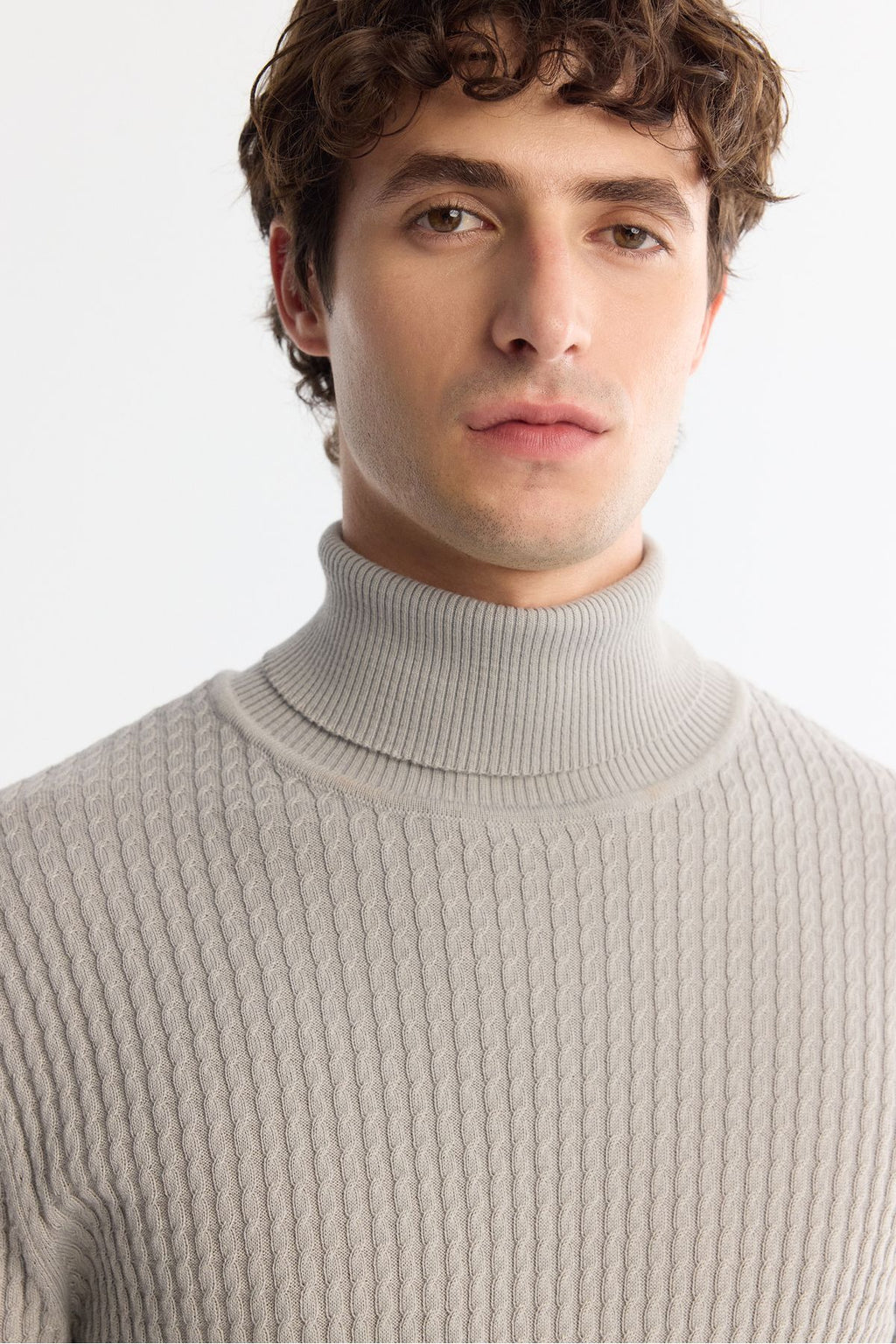 Men's Gray Full Fisherman Neck Wool Mixed Jacquari Knitwear Sweater A42Y5074