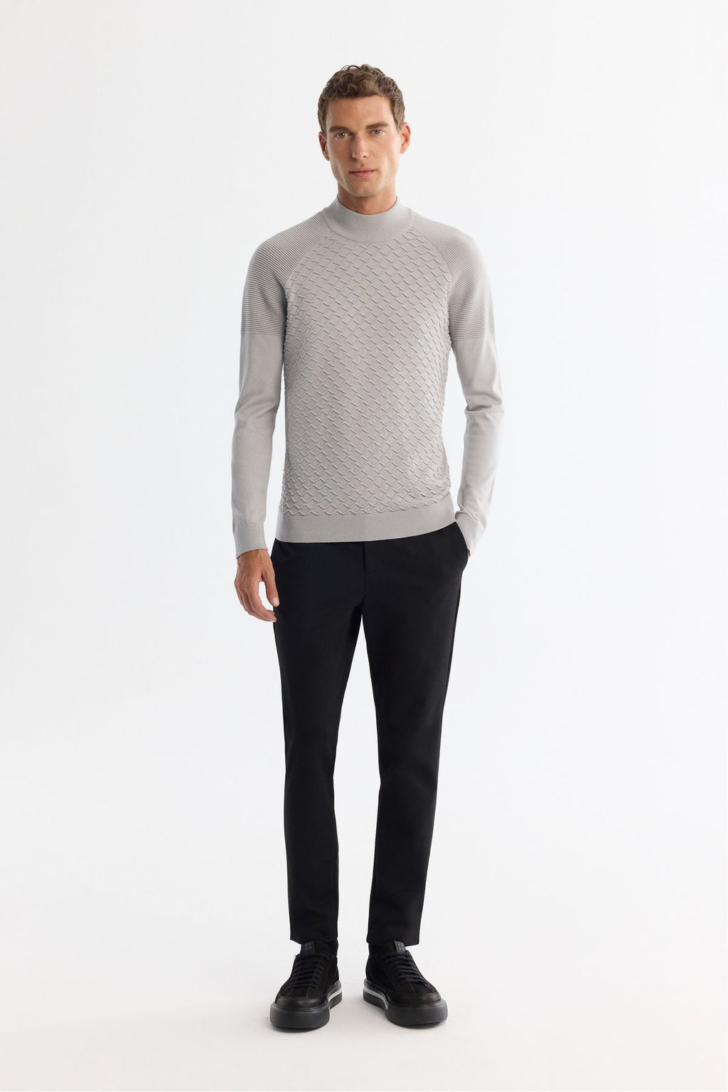Men's gray half half fisherman Yaka Soft Touch Knitwear Sweater A42Y5023