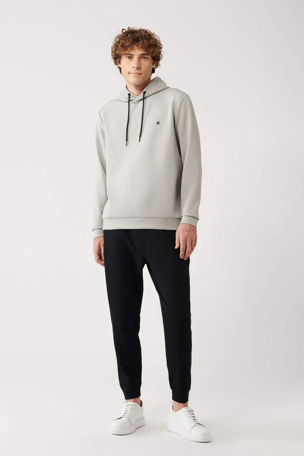 Men's gray hooded flexible soft texture Interlok fabric Sweatshirt B001101
