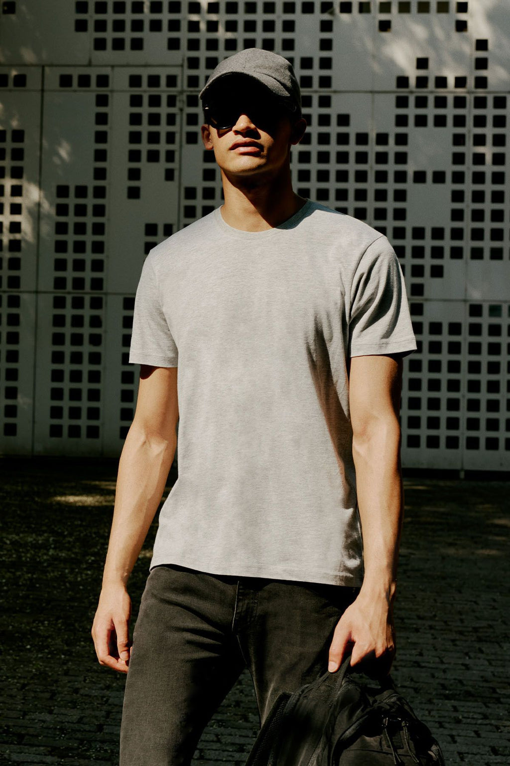 Men's gray melange cotton slim fit narrow cut bike bike collar basic t -shirt