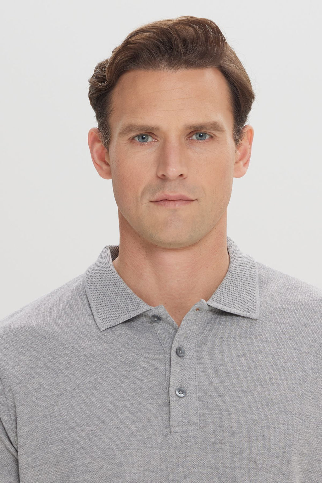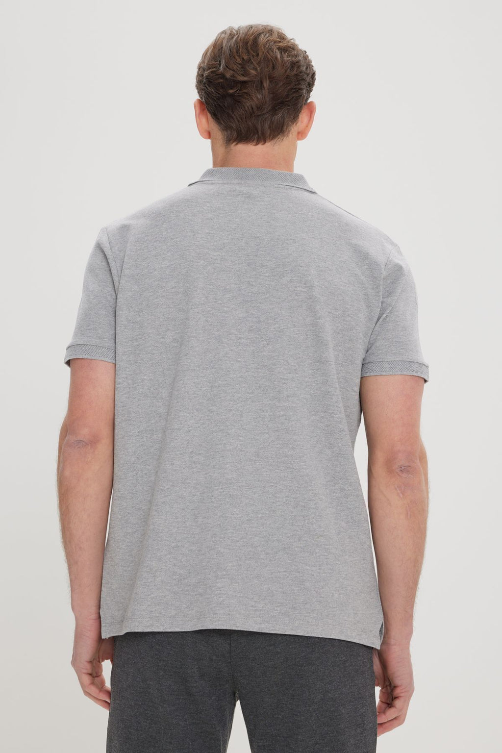Men's Gray Melanj 100 %Cotton Curlled Pike Polo Slim Slim Fit Narrow Cut T -shirt