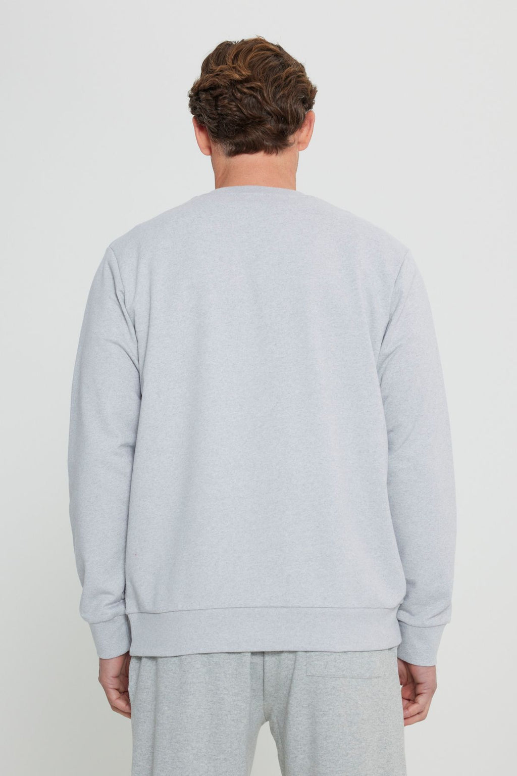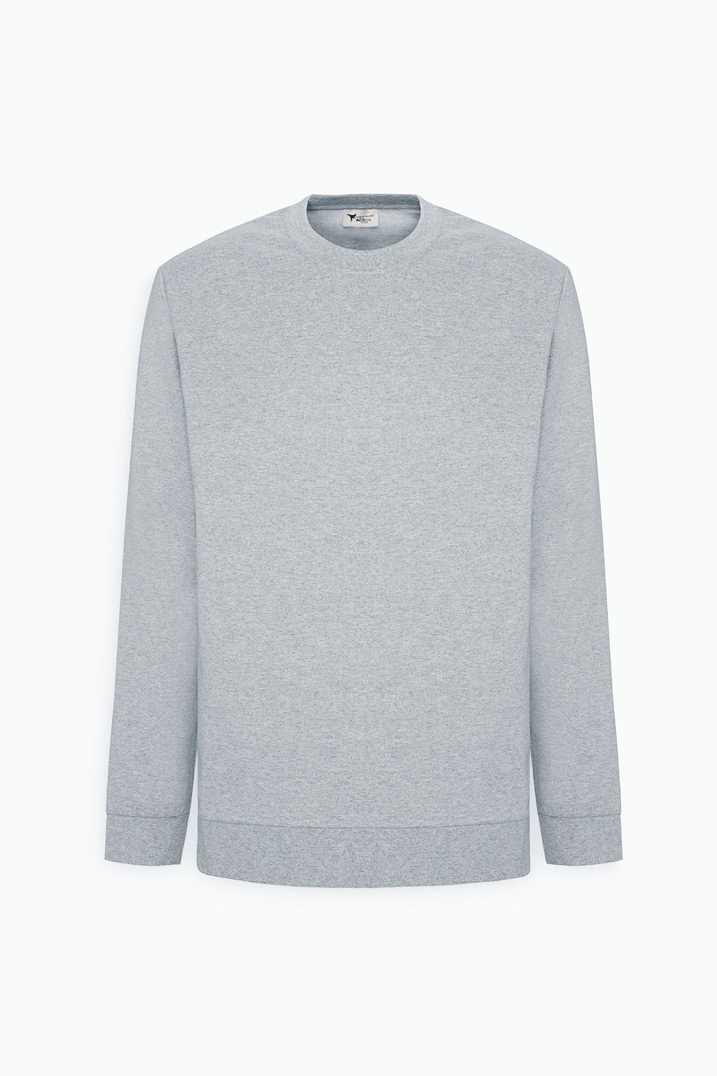 Men's Gray Melanj Standard Fit Normal Cutting 2 Yarn Cotton Bike Collar Sweatshirt