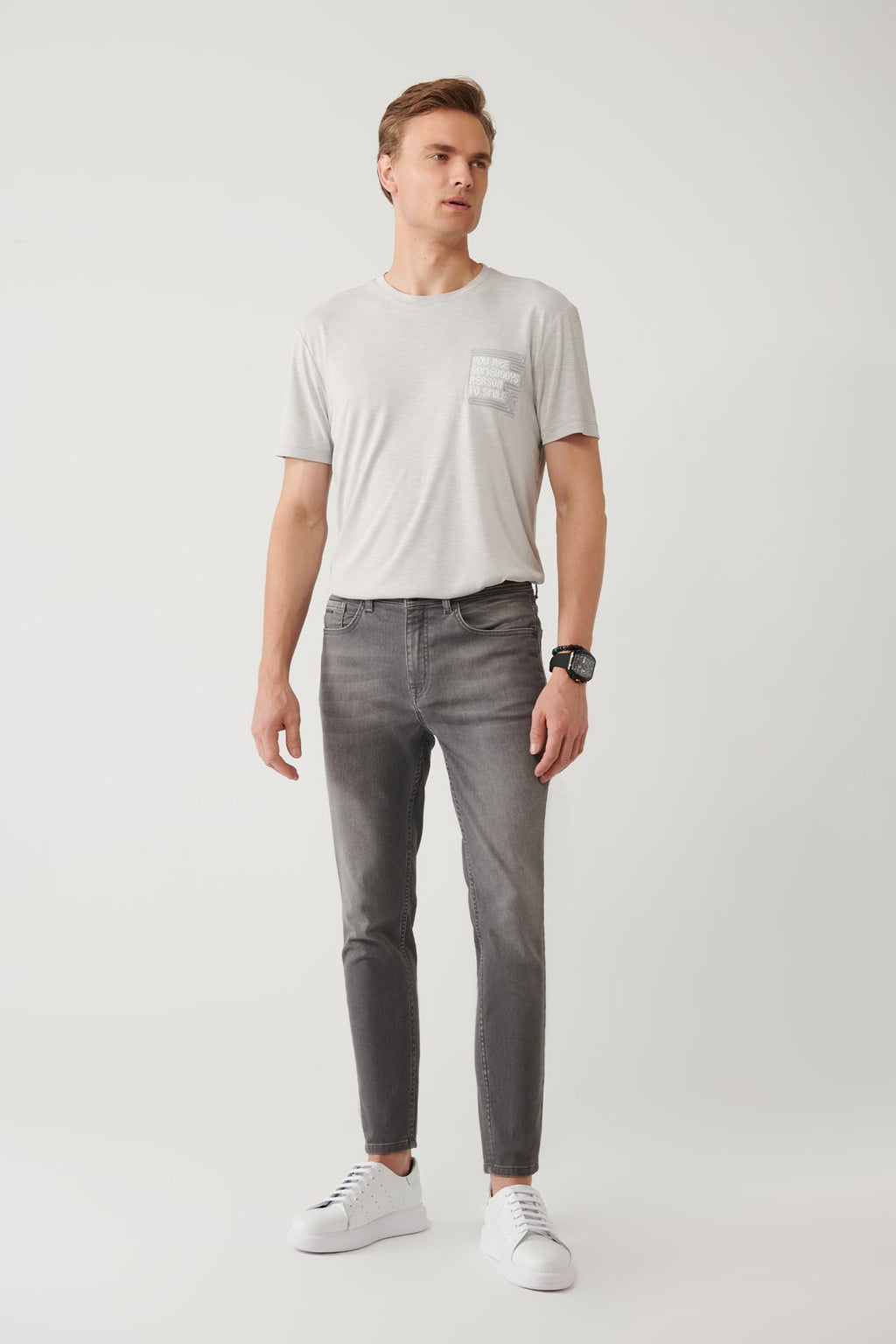 Men's Gray Obedness Washing Flexible Jean Pants A41y3514