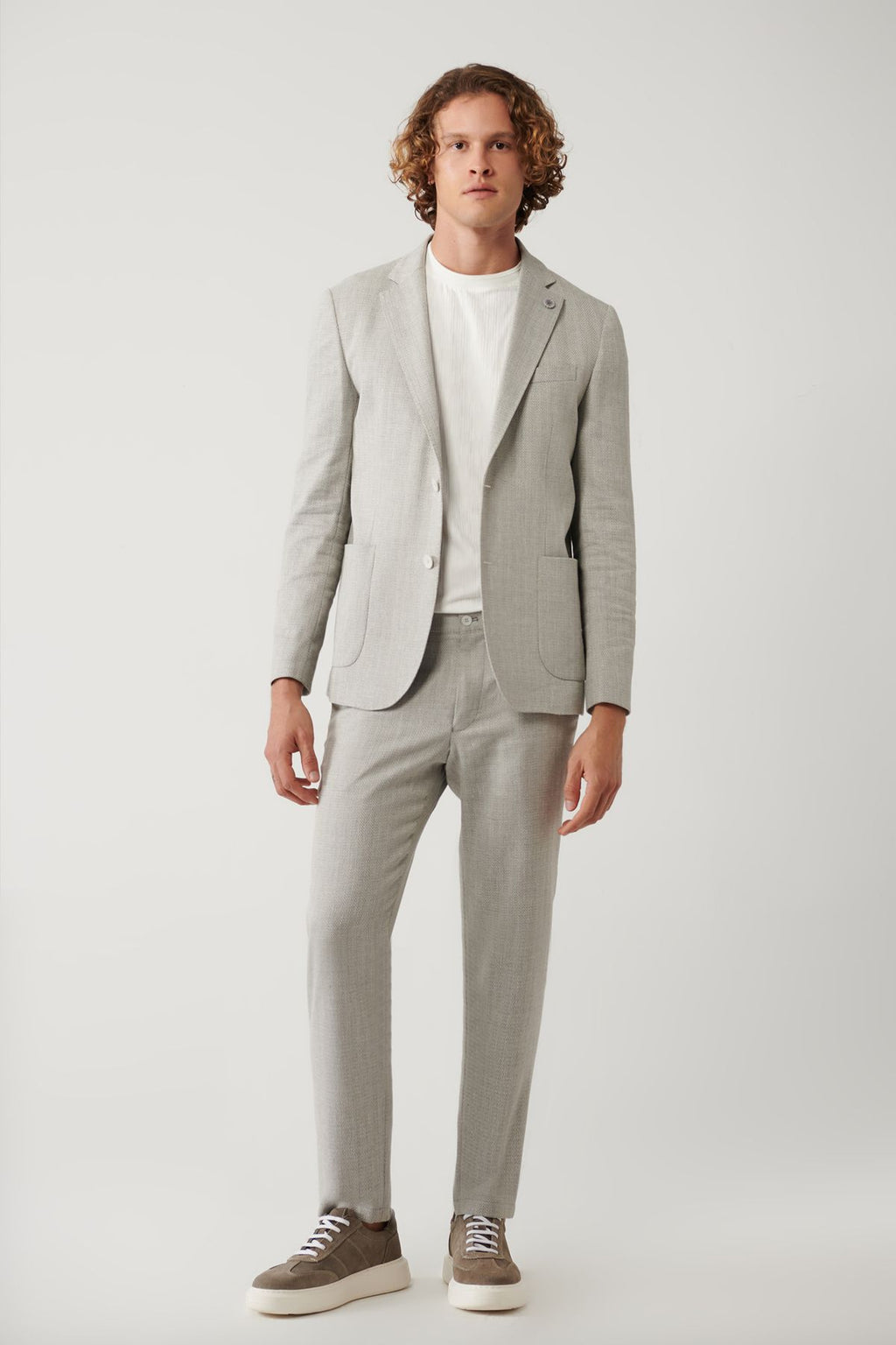 Men's Gray Side Pocket Linen Mixed Lightweight Suit Pants A41y3229
