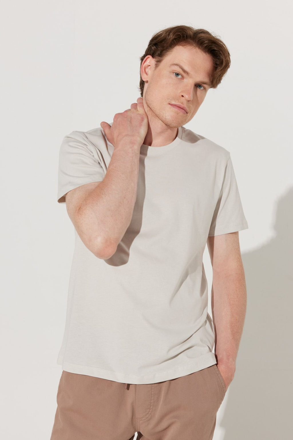Men's gray slim fit narrow cut 100 %cotton bike collar Basic T -shirt