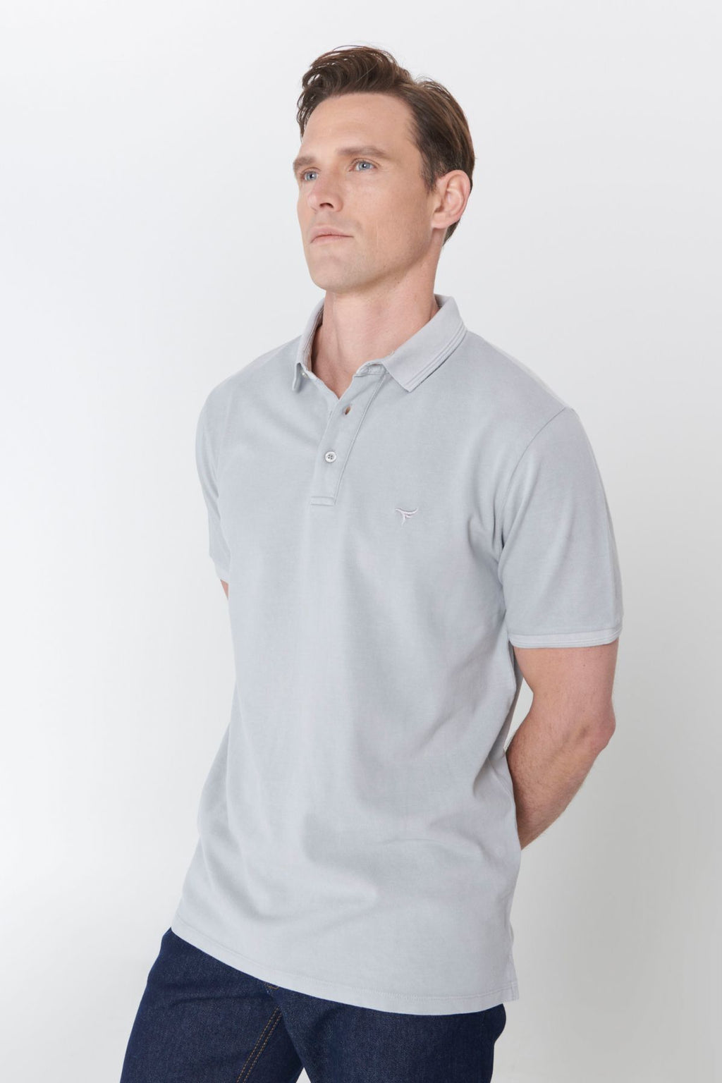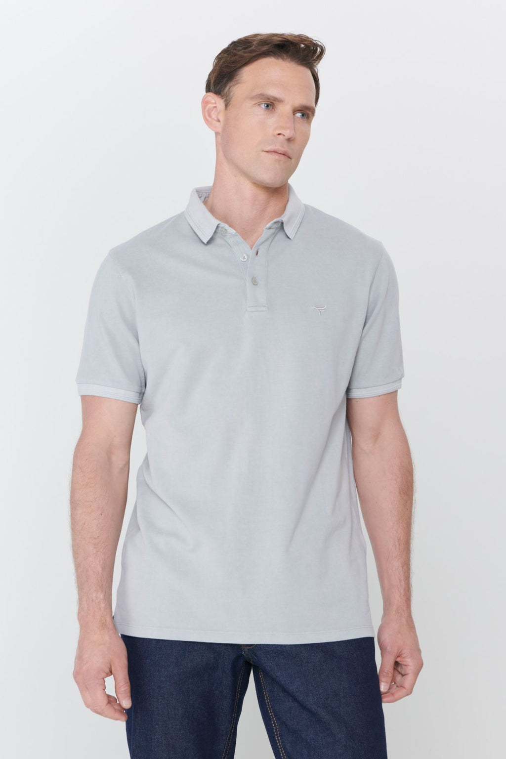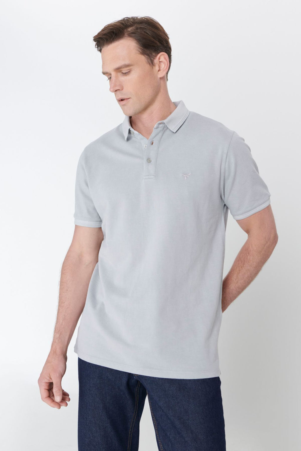 Men's gray slim fit narrow cut polo collar 100 %cotton patterned T -shirt