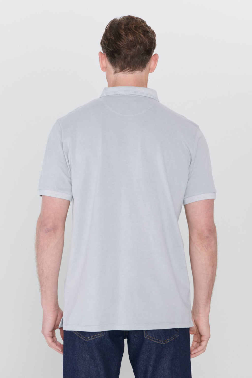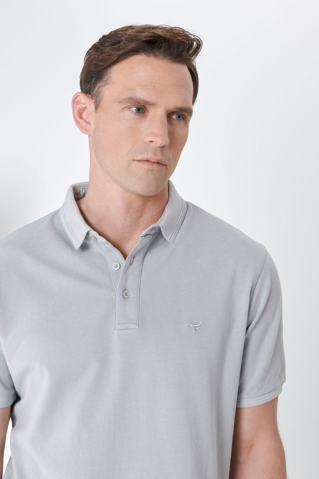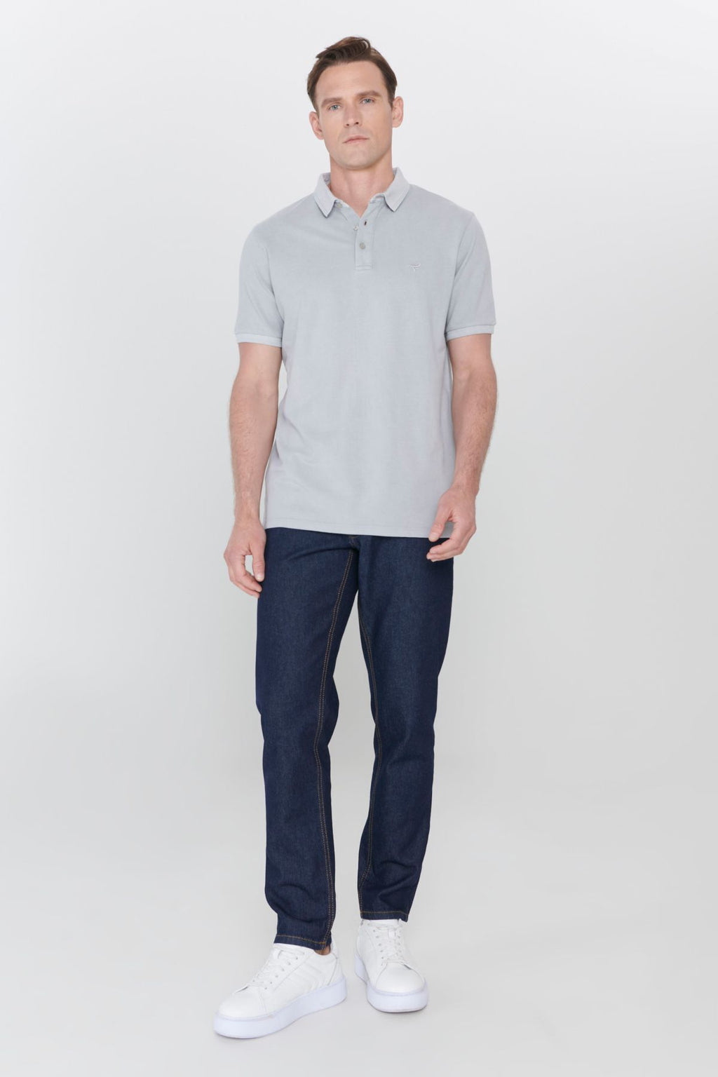 Men's gray slim fit narrow cut polo collar 100 %cotton patterned T -shirt