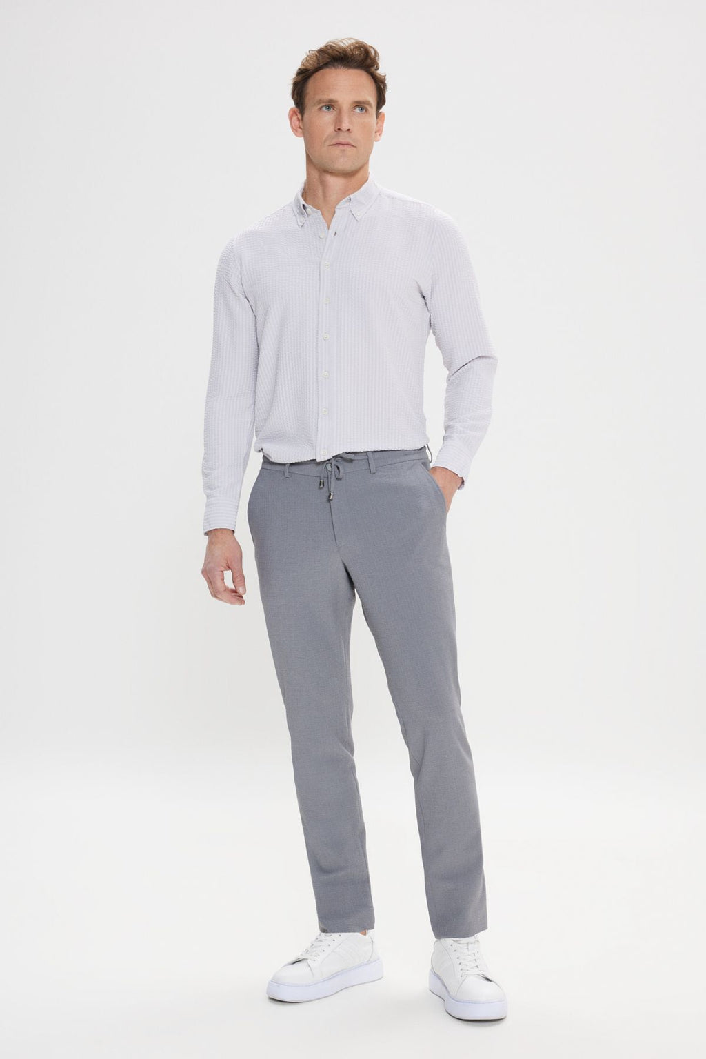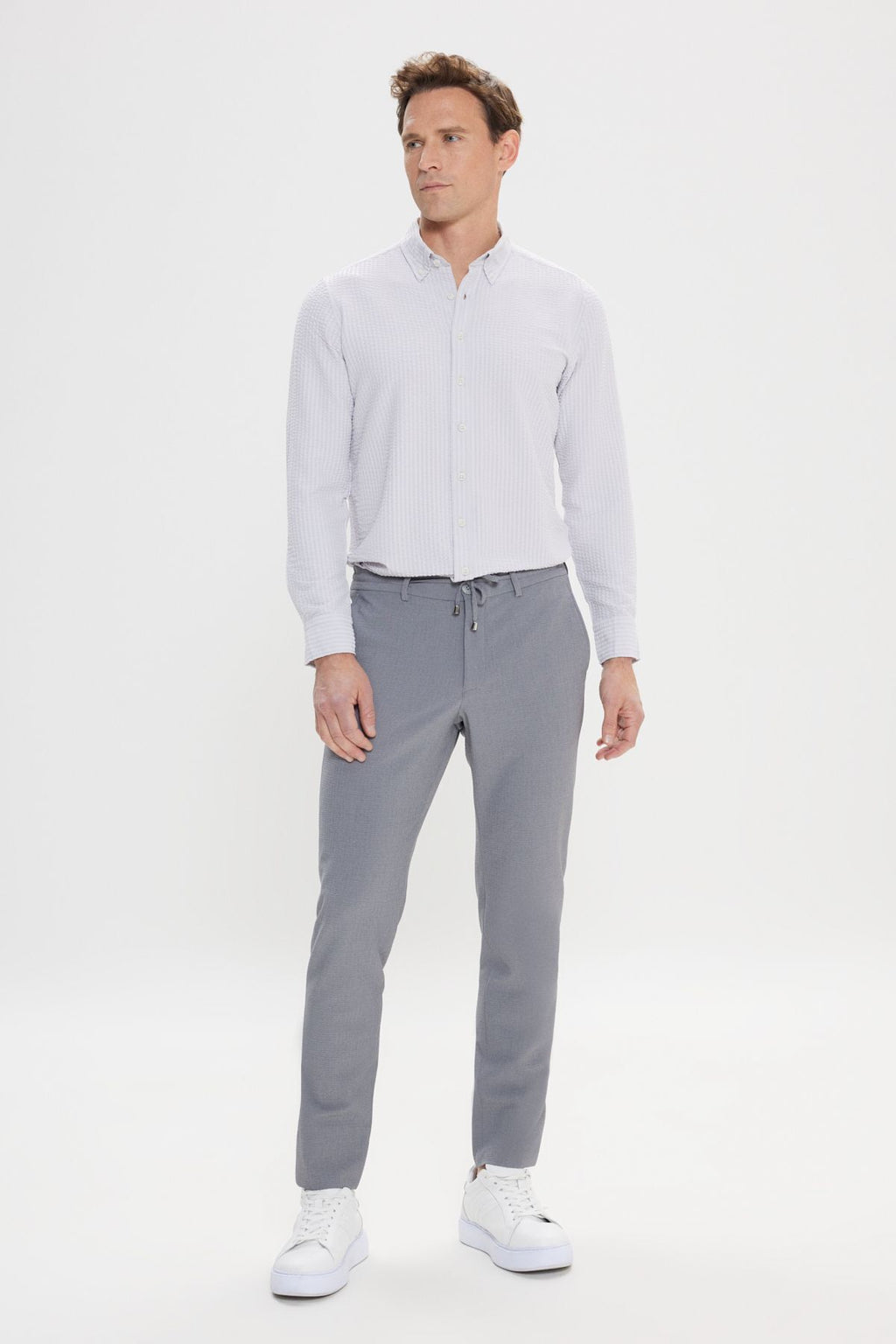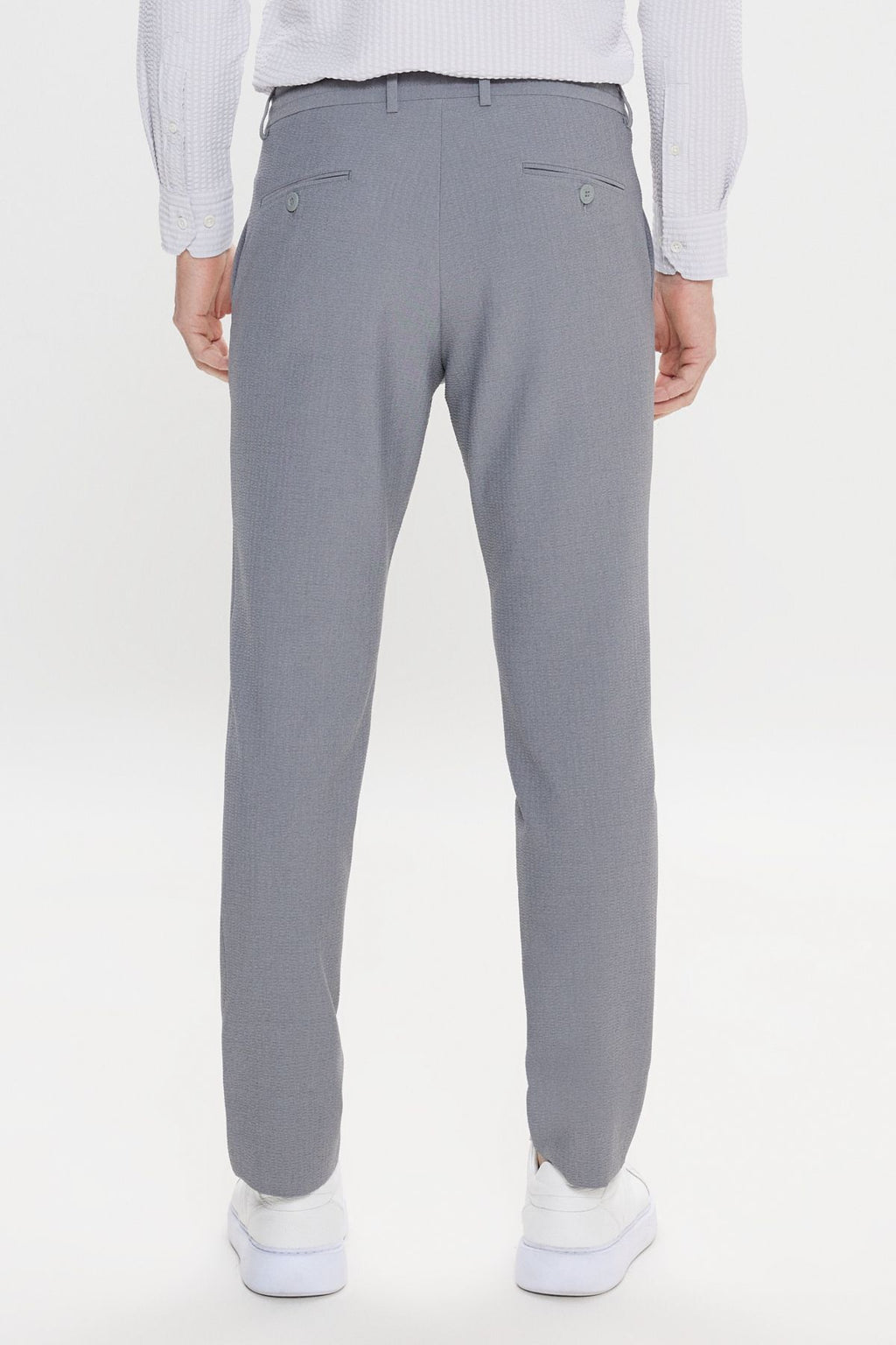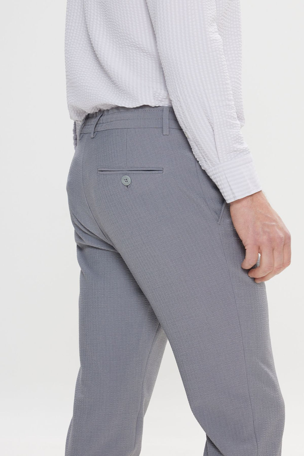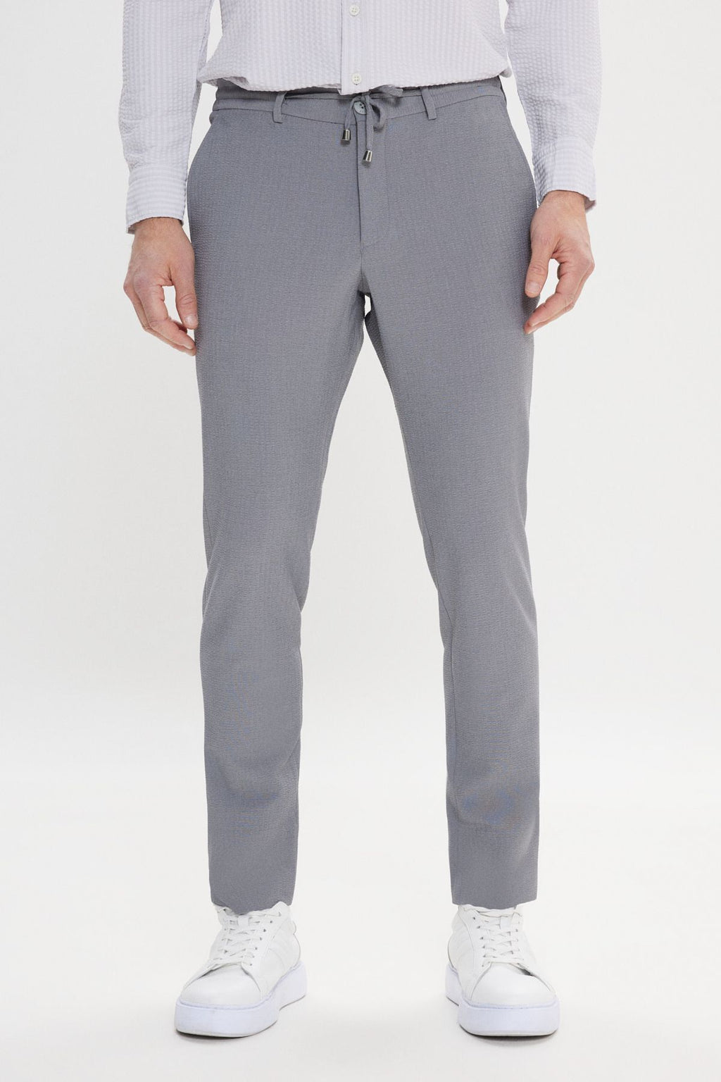 Men's gray slim fit narrow -cut waist tied side mobile wafer patterned pants