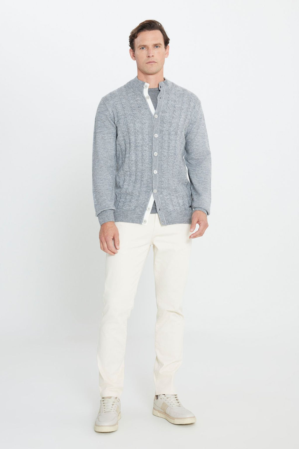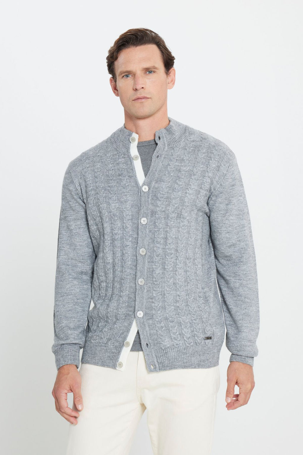 Men's Gray Standard Fit Normal Cut Bato Neck Patterned Knitwear Cardigan