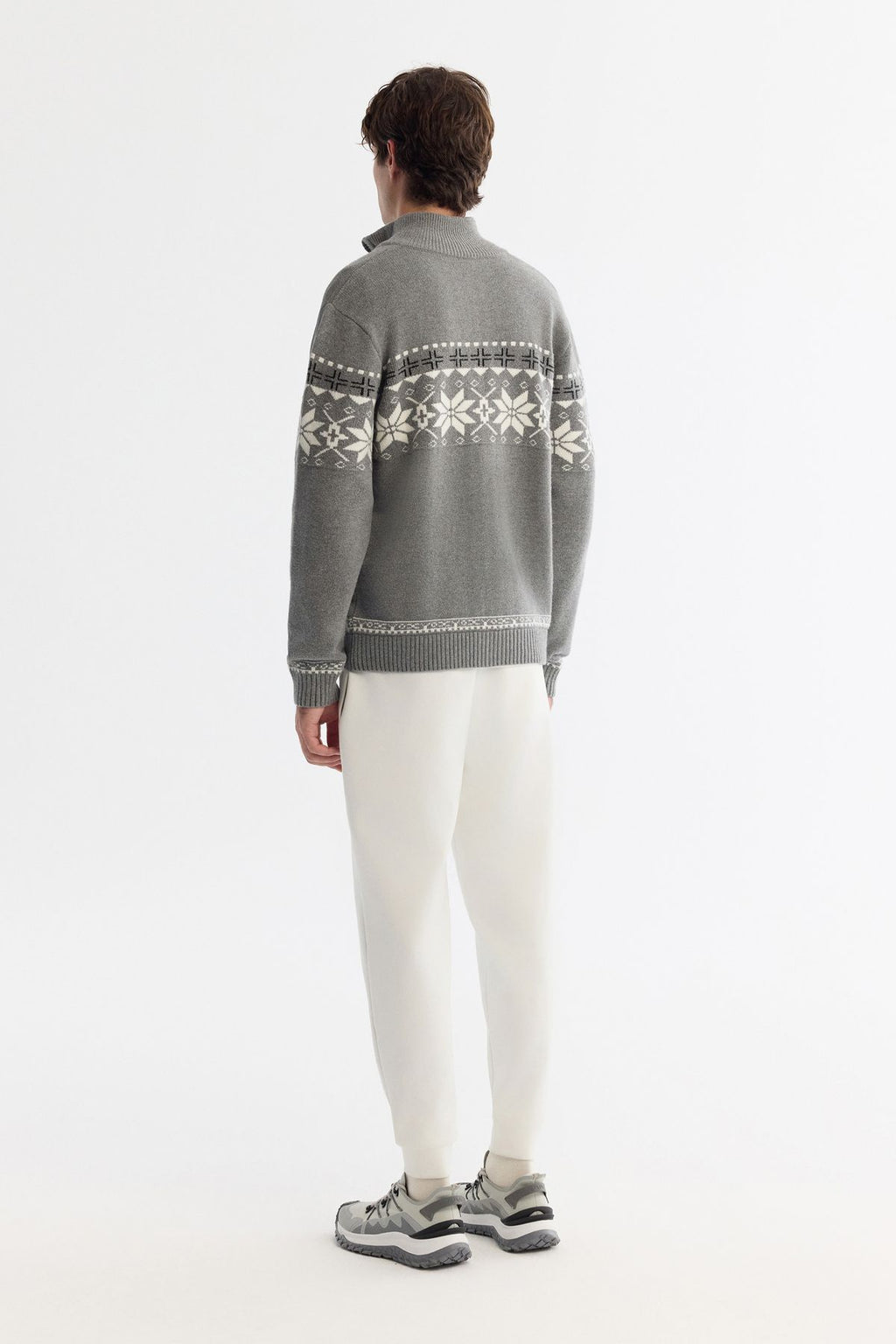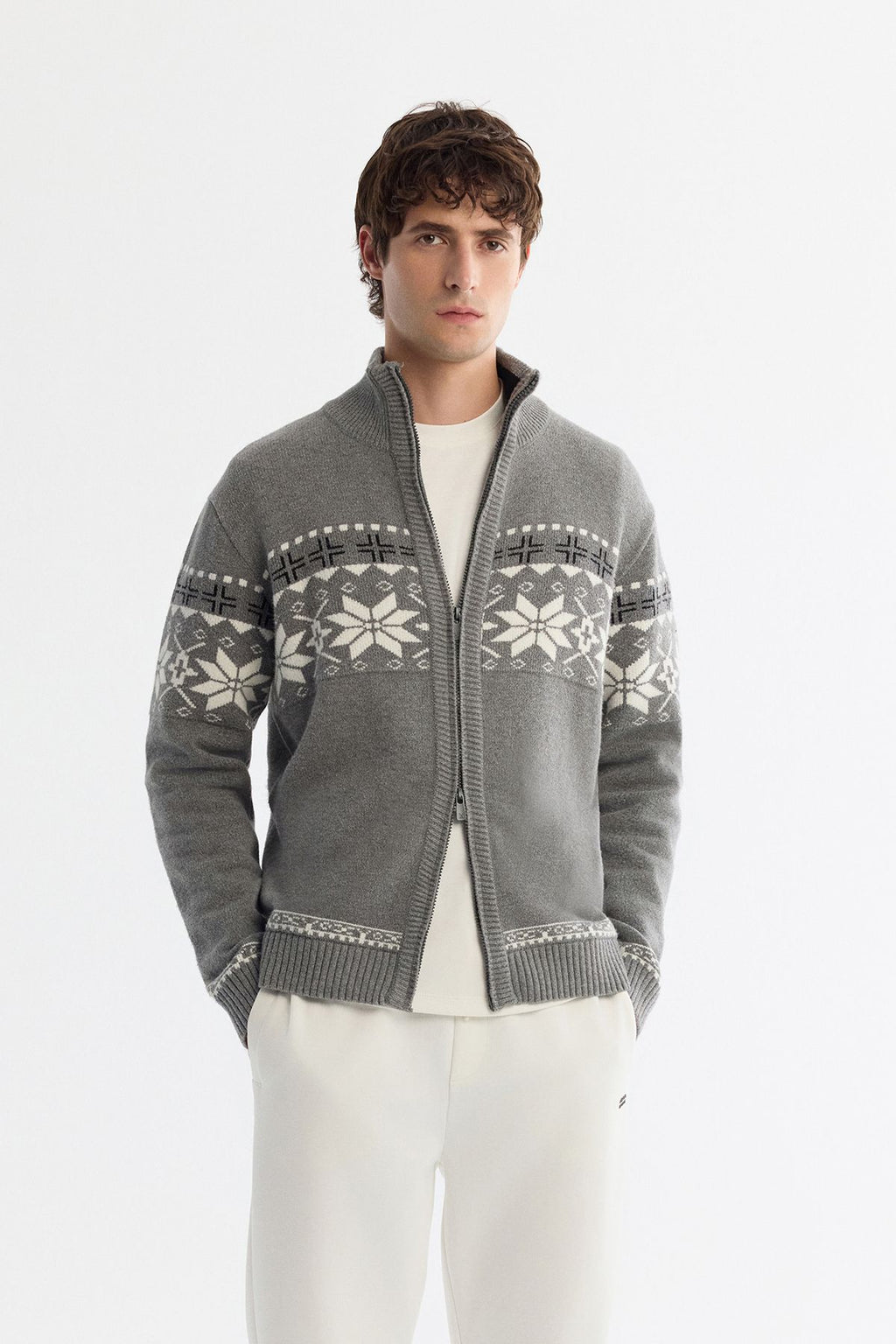 Men's gray upright collar zipper patterned knitwear cardigan A42y5177