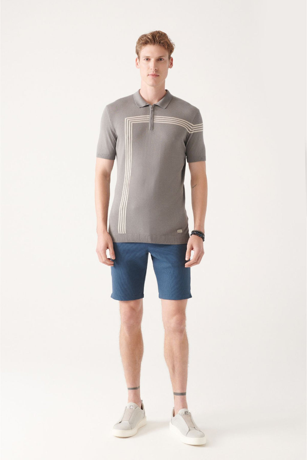 Men's Gray Zipper Line Detailed Polo Yaka Triko T-Shirt A31y5127