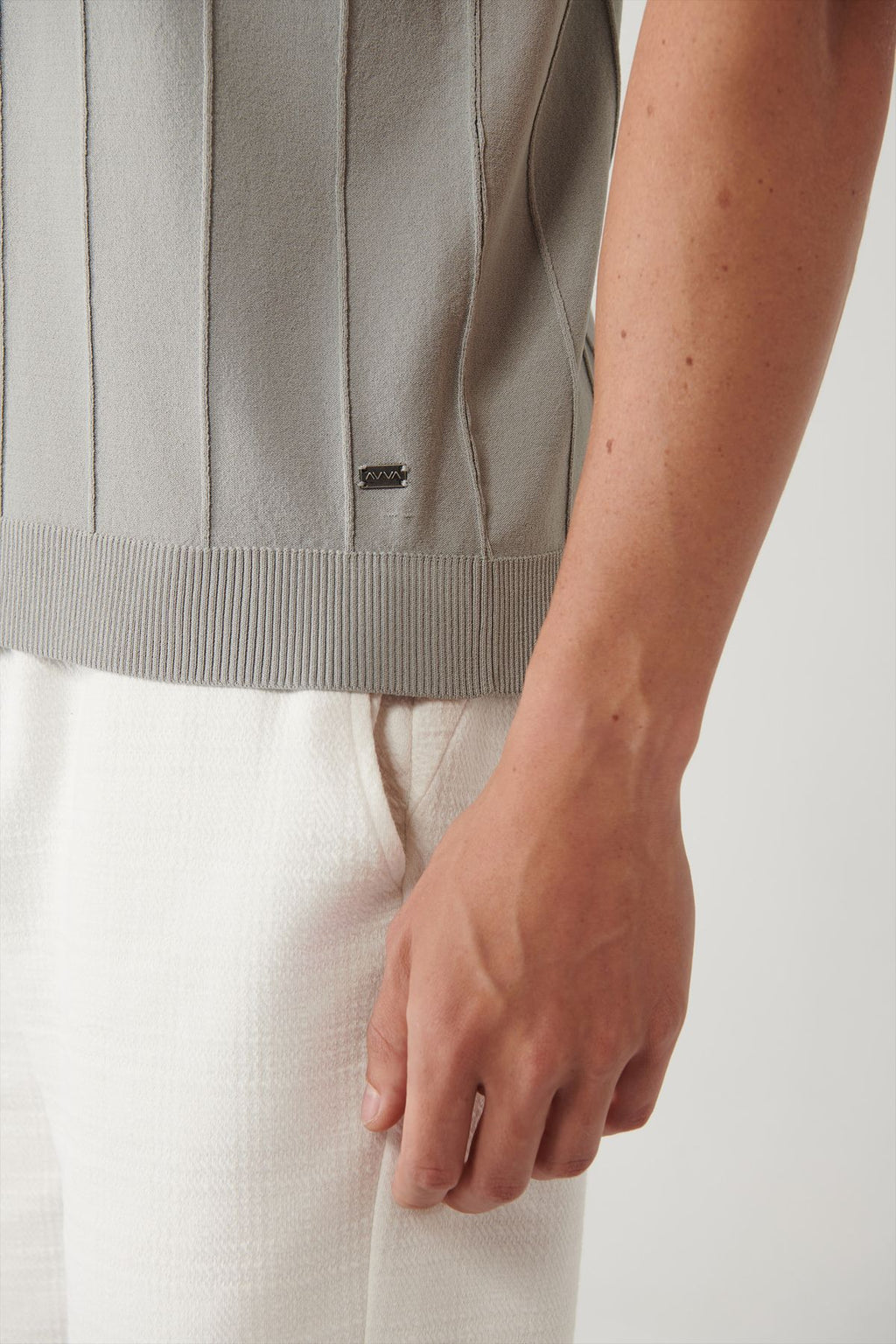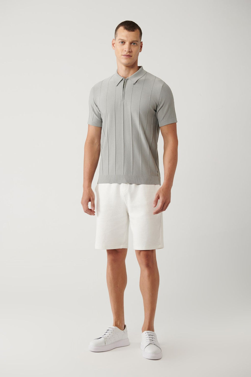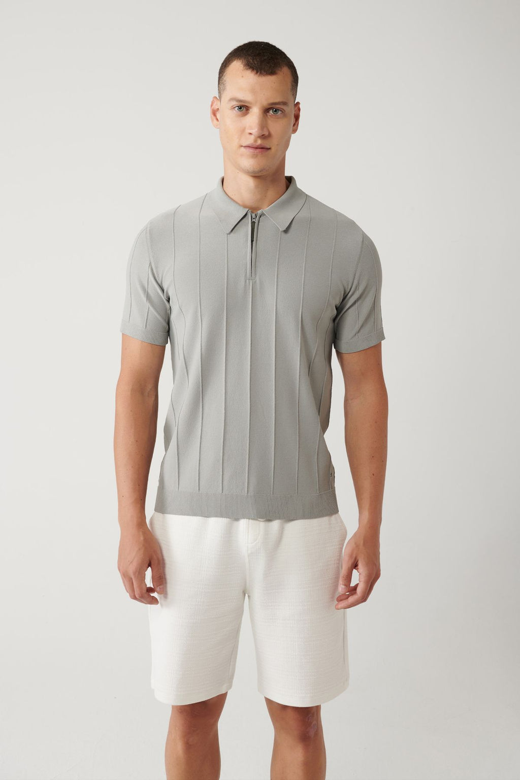 Men's gray zipper rayon wick braided polo collar knitwear T-shirt A41y5073