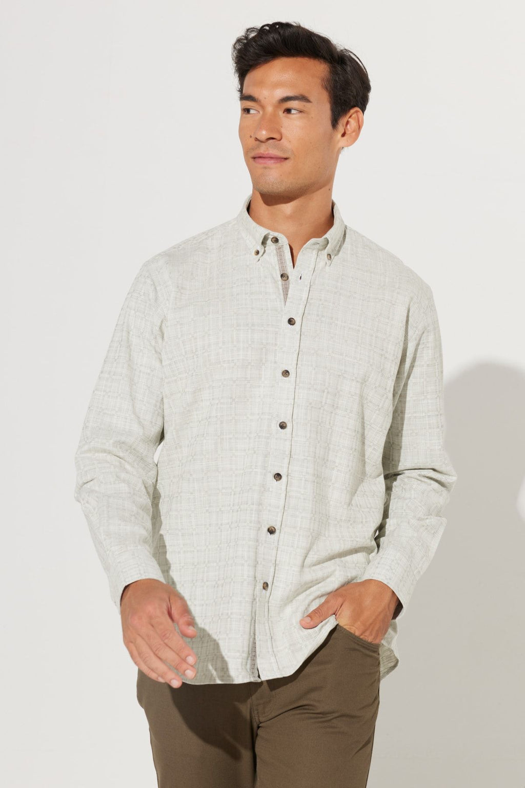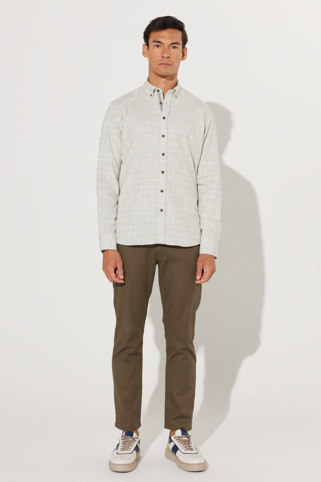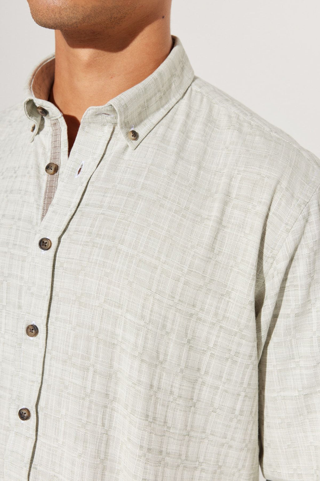 Men's Green Comfort Fit Casual Cutting Buttoned Neck Clause 100 %Cotton FLAME SHIRT