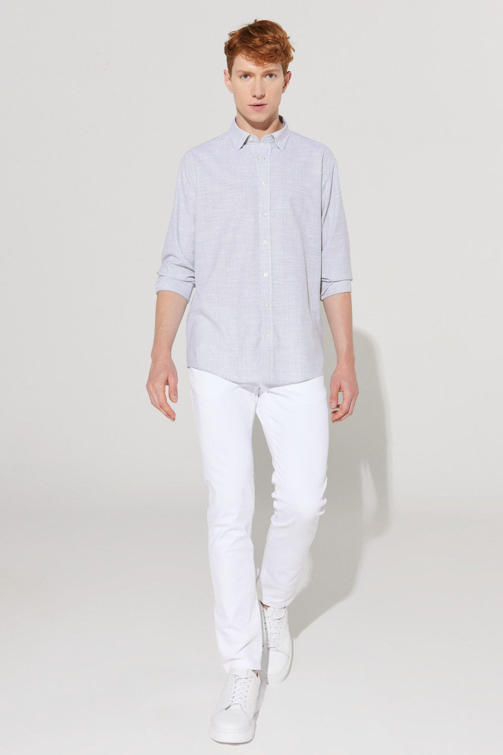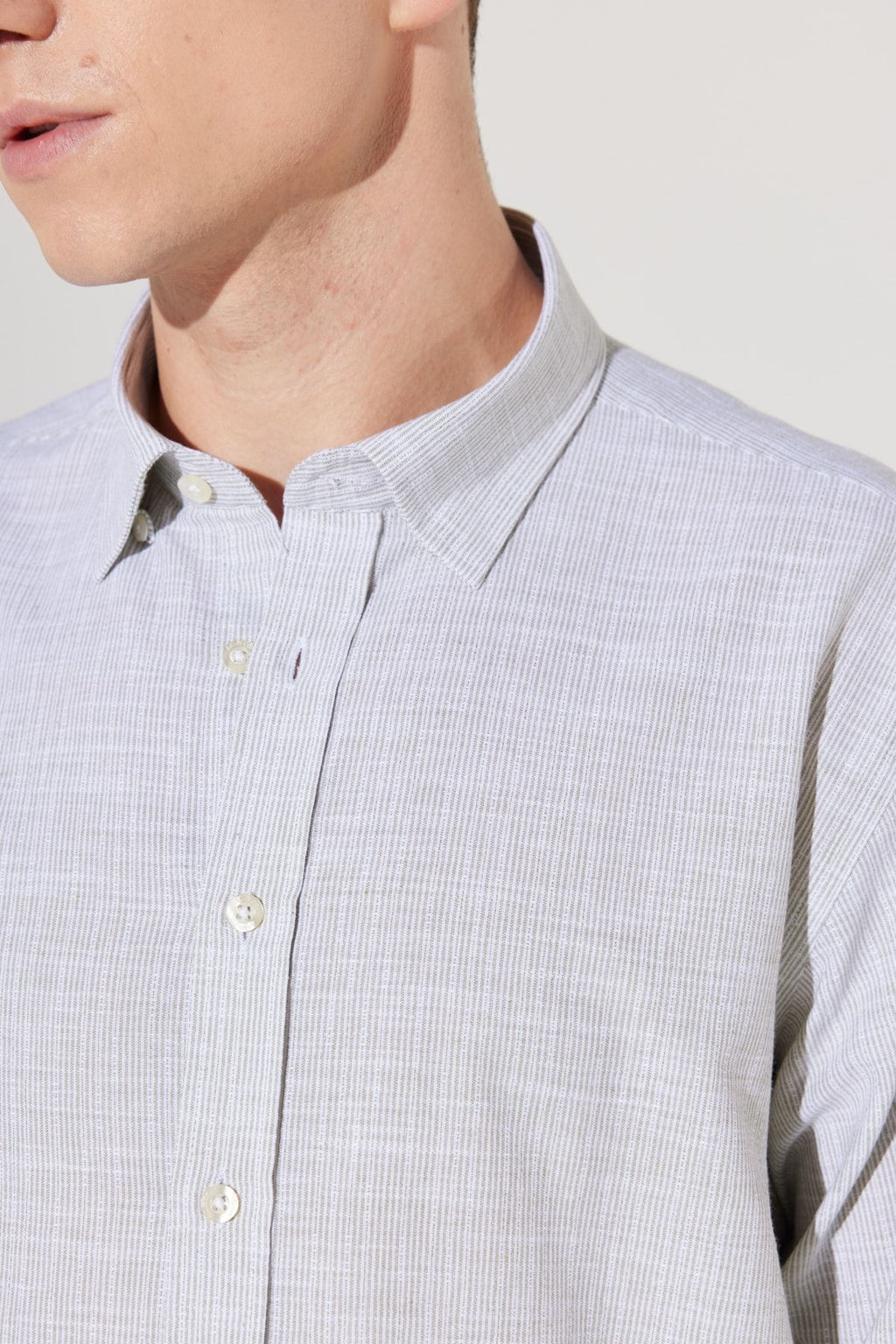 Men's Green Comfort Fit comfortable cut hidden buttoned collar 100 %cotton striped shirt