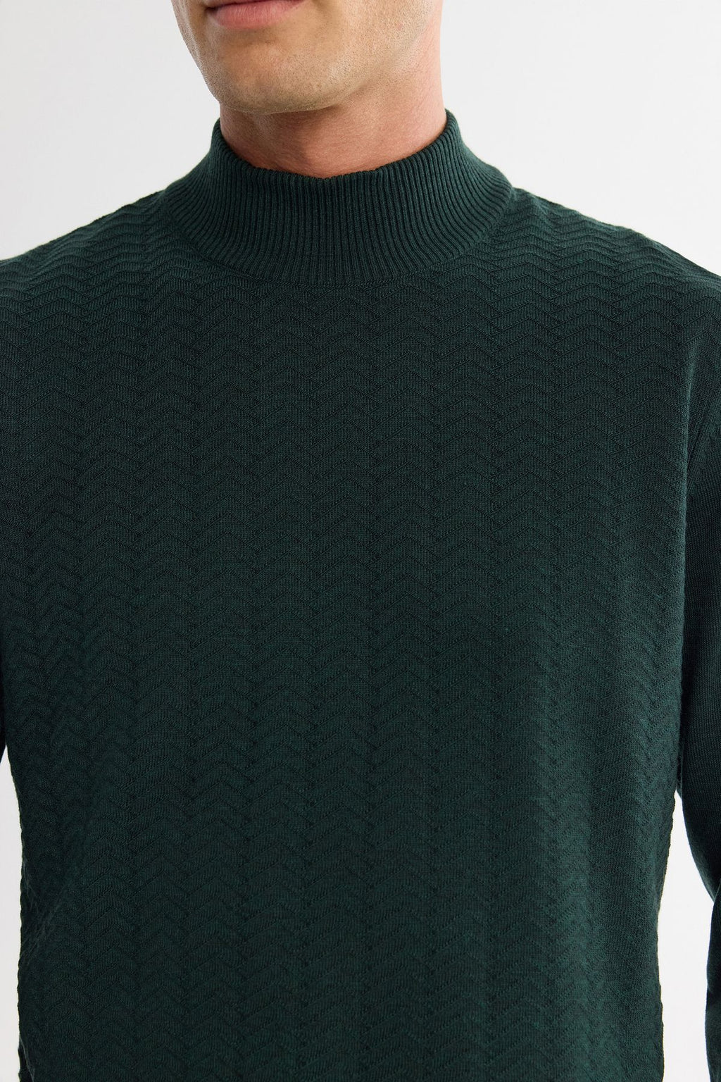 Men's Green Half Fisherman Collar Capulus Knitwear E005108