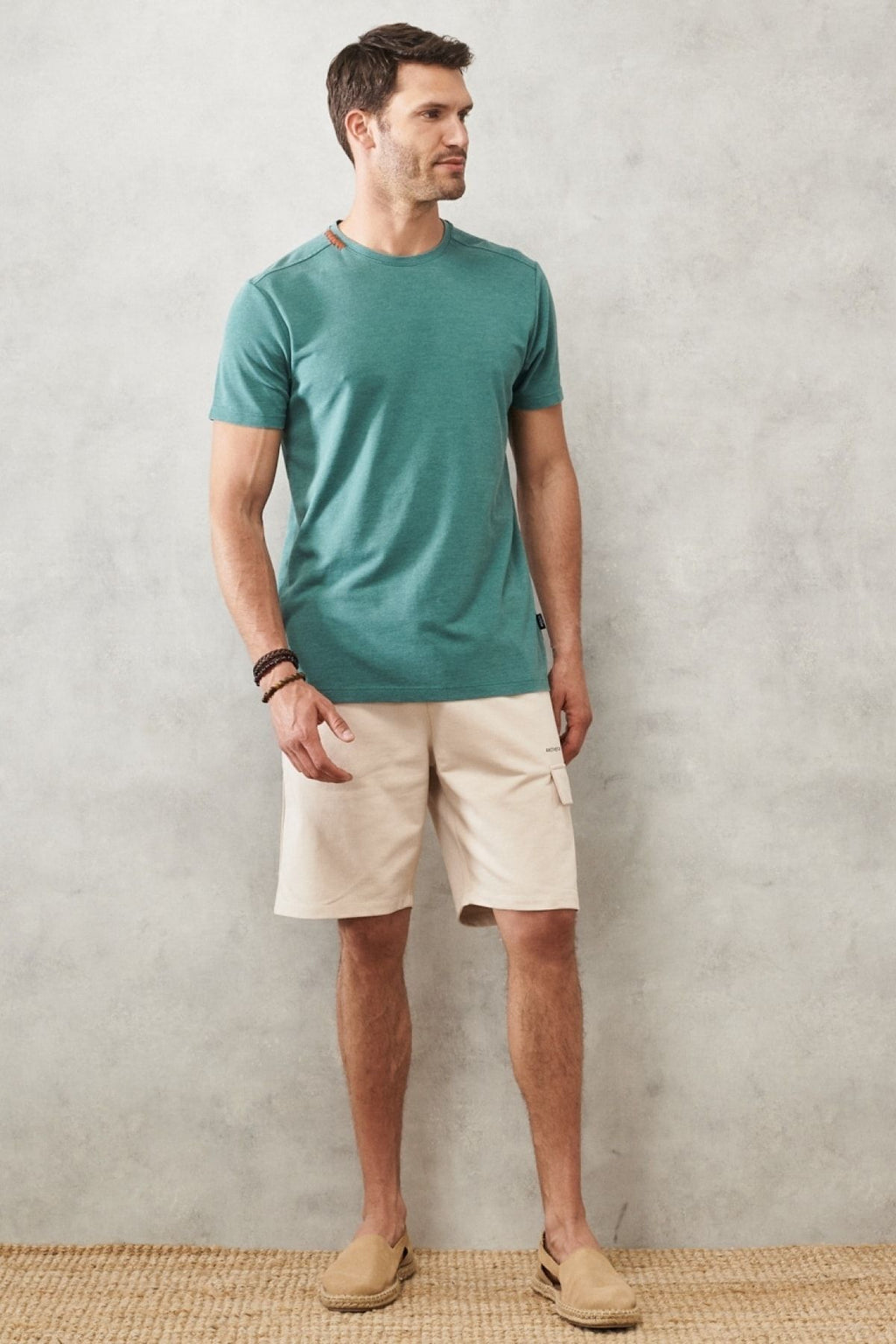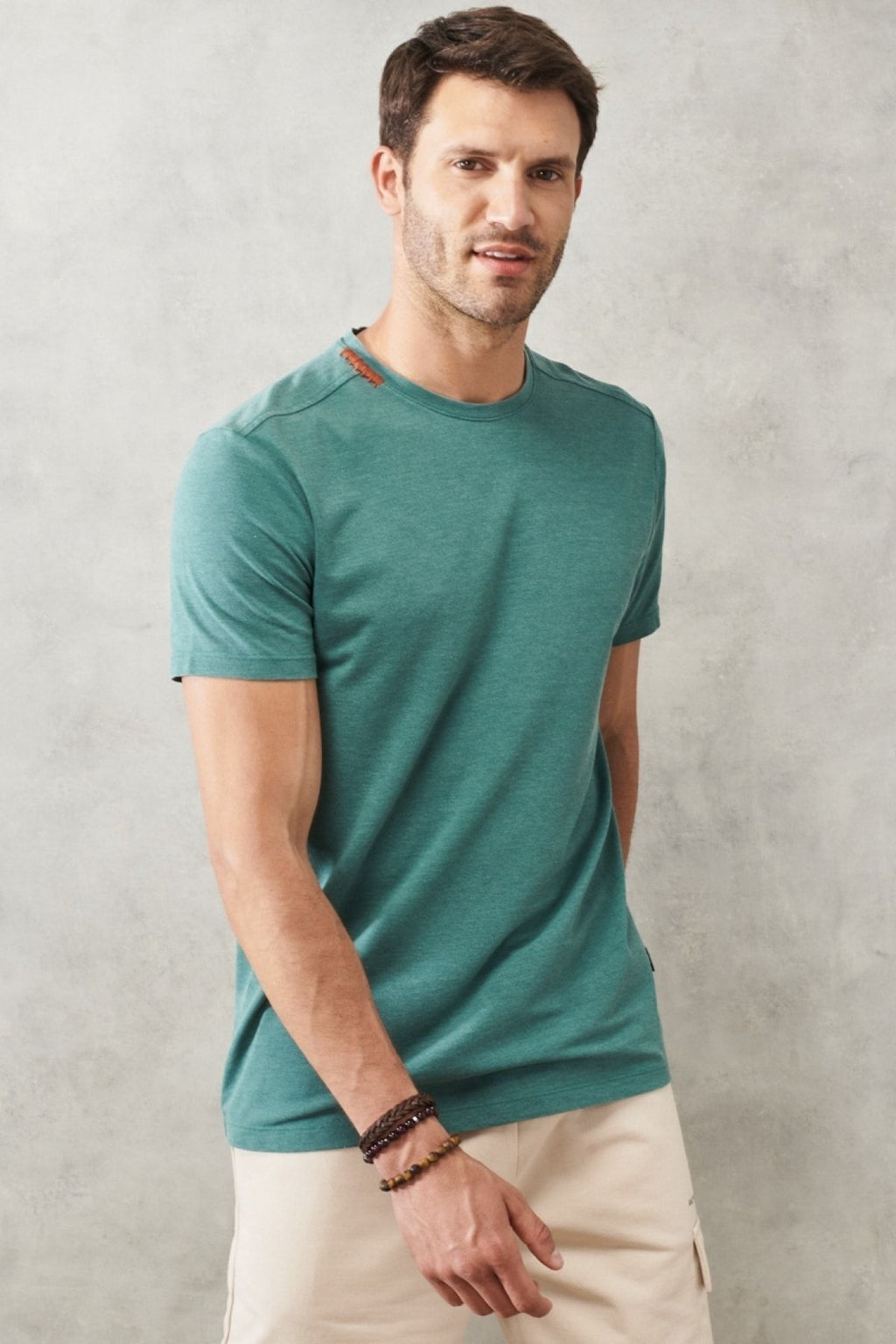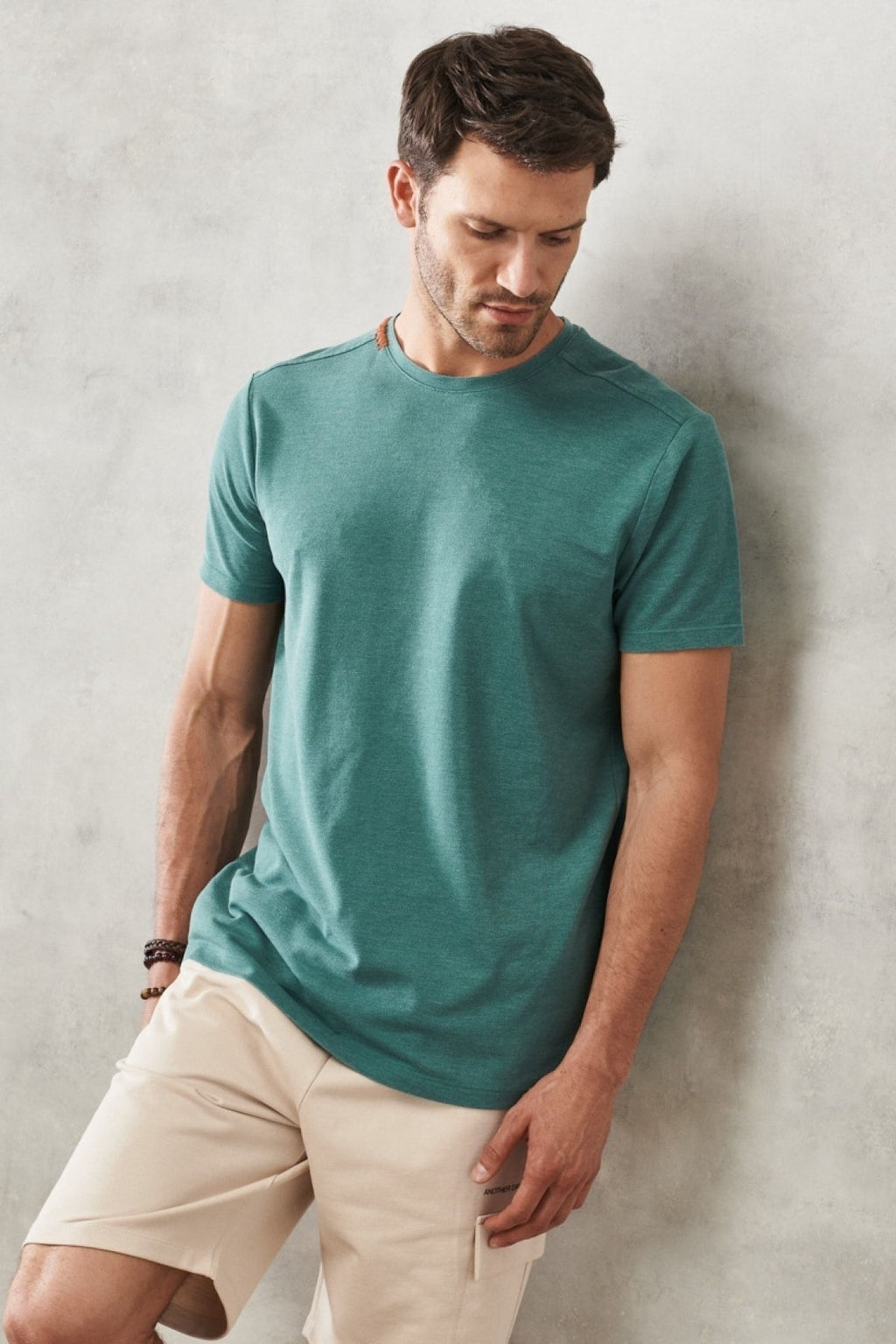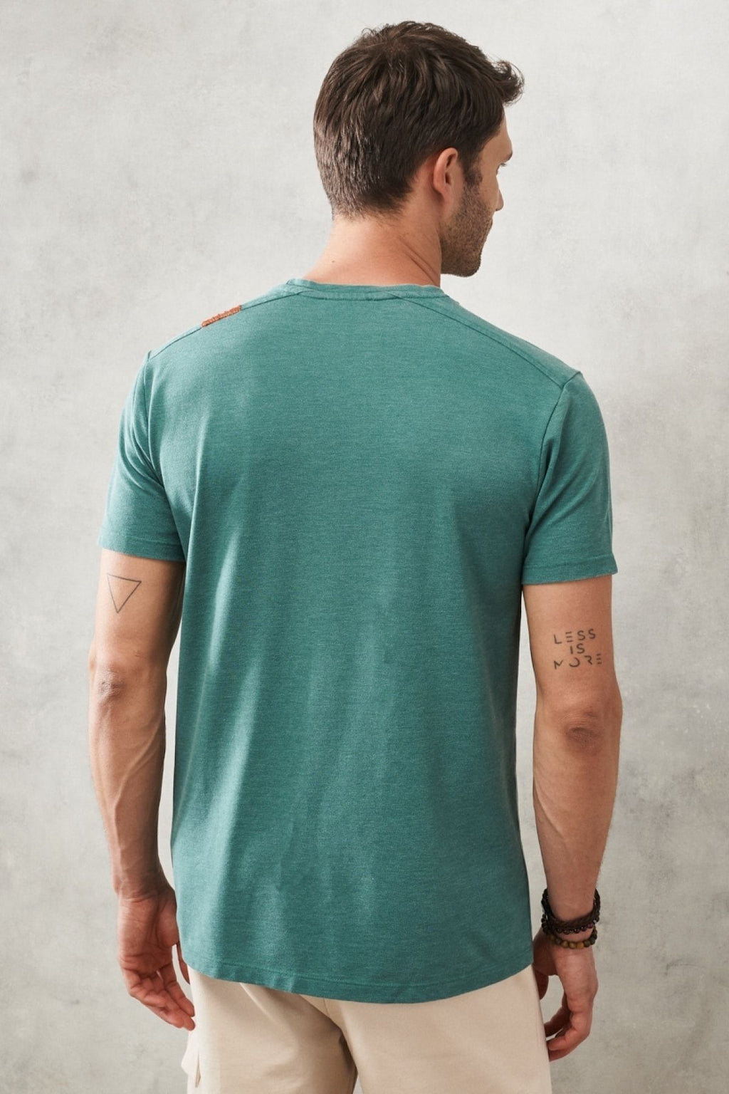 Men's green slim fit narrow cut bike bike collar cotton t -shirt