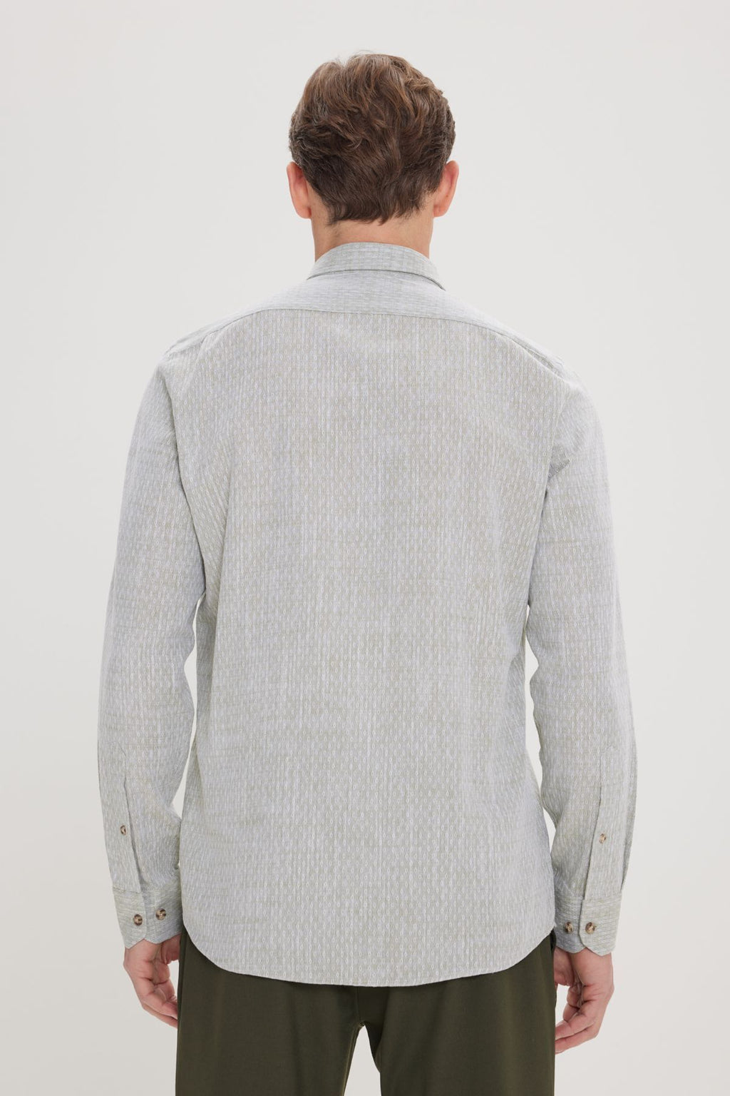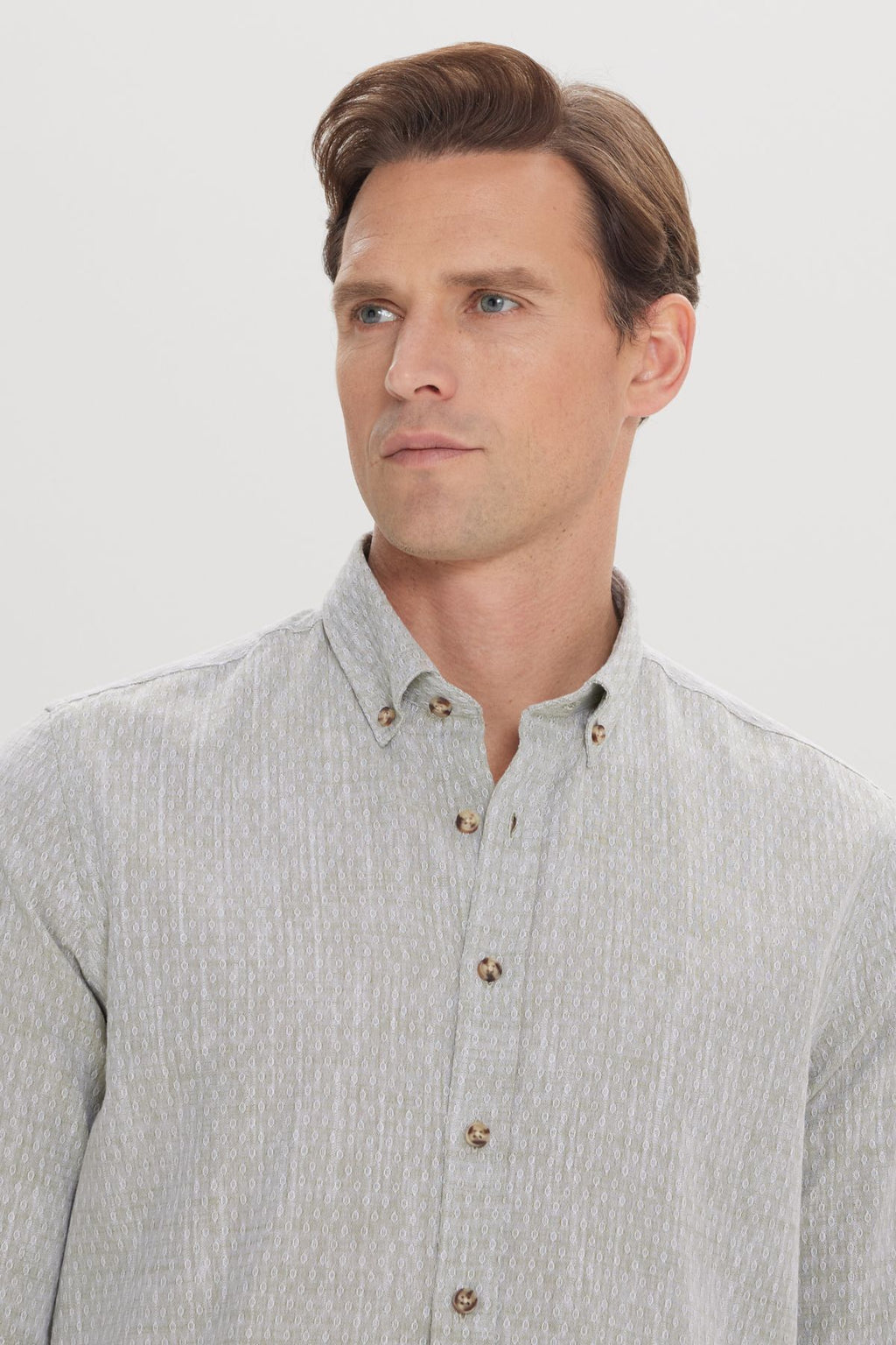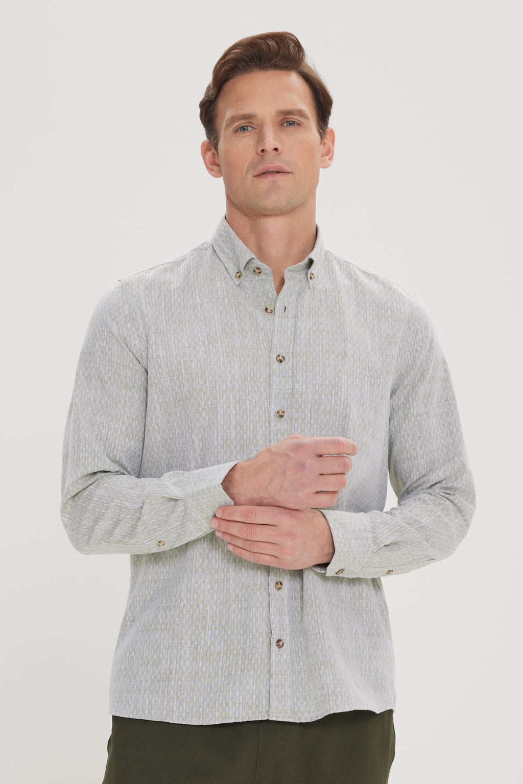 Men's Green Slim Fit Narrow Cutting 100 %Cotton Amelor Buttoned Button Casual Shirt