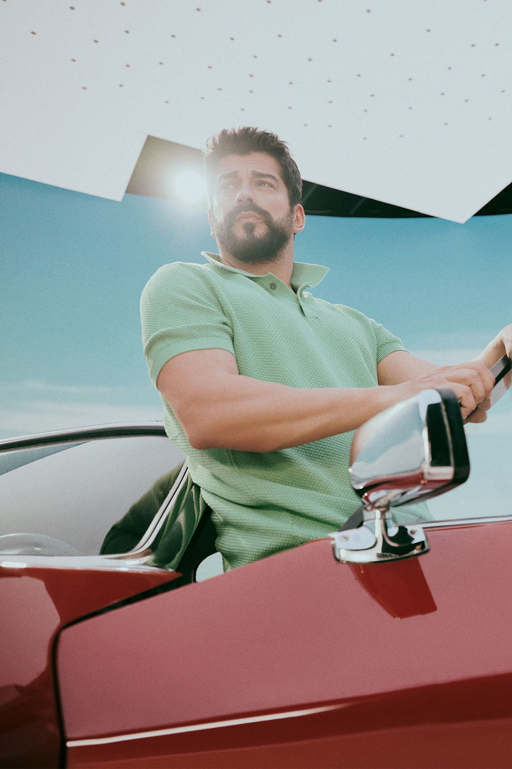 Men's Green Standard Fit Normal Cut Polo Yaka 100 %Cotton Short Sleeve Triko T -shirt