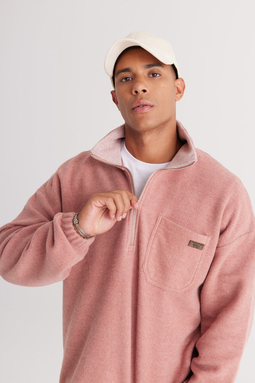 Men's Gul Drunk Melanj Loose Fit Içi Polarli Fool