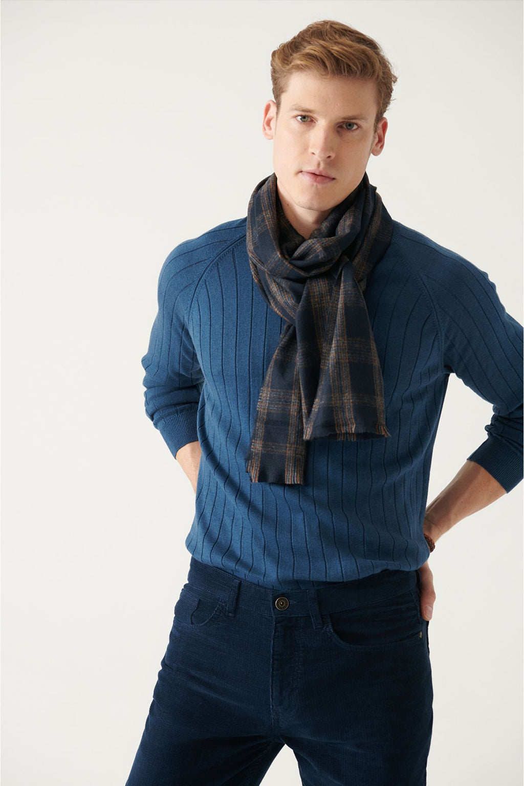 Men's Indigo Bicycle collar Jacquari Knitwear A22y5179