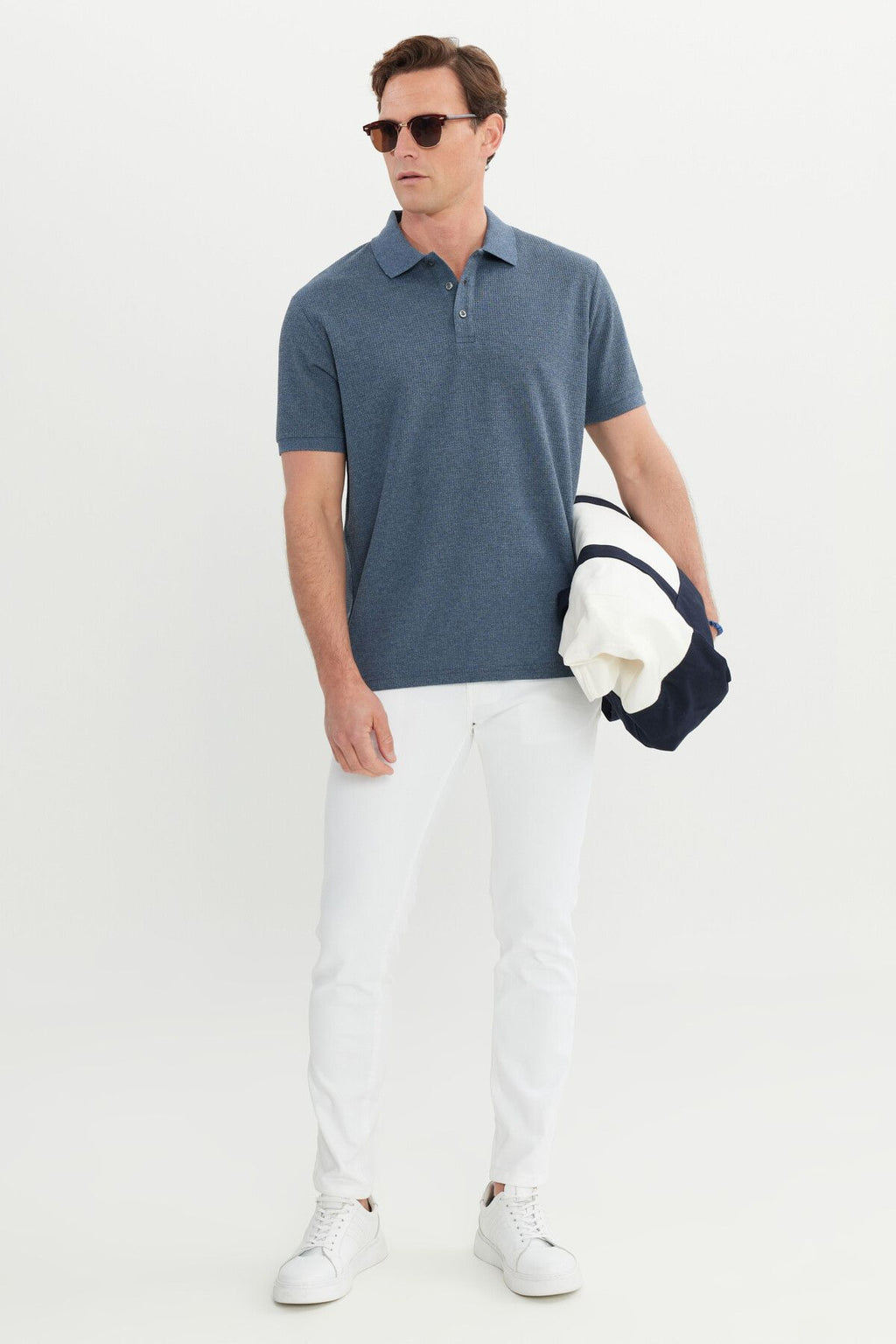Men's Indigo Cotton Standard Fit Normal Cut Patterned Polo Yaka T -shirt