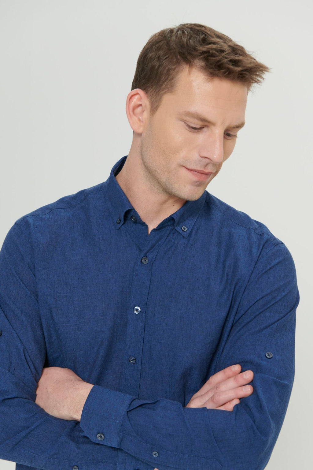 Men's Indigo Kenen Comfort Fit Casual Cutting Buttoned Neck Casual Shirt