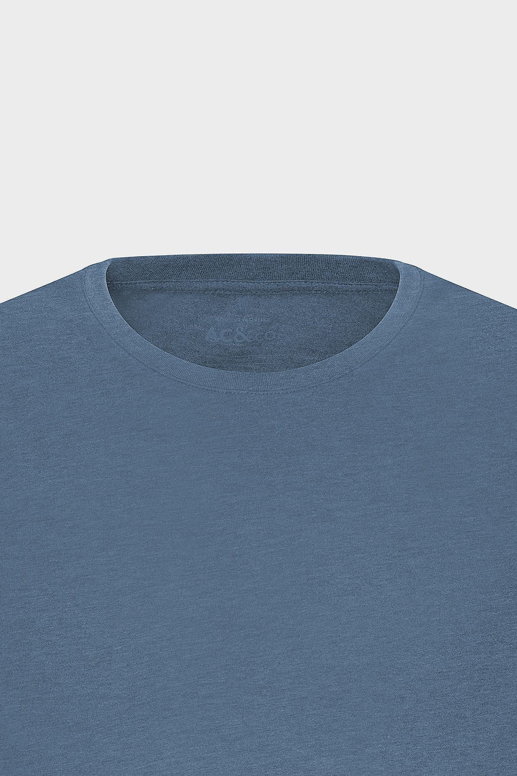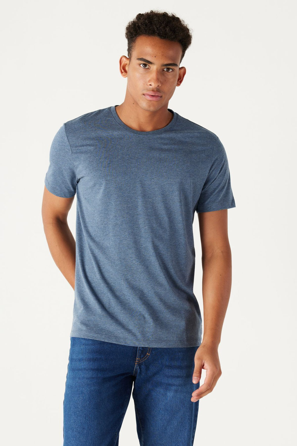 Men's Indigo melange cotton slim fit narrow cut narrow cut bike collar basic t -shirt
