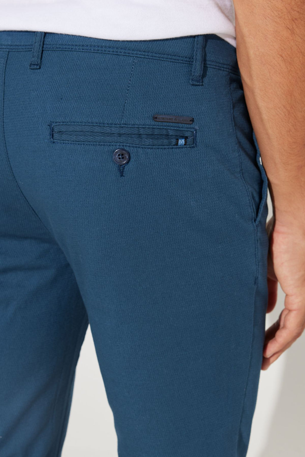 Men's indigo slim fit narrow cut cotton flexible relaxed trousers