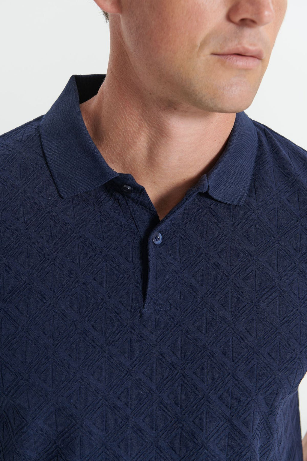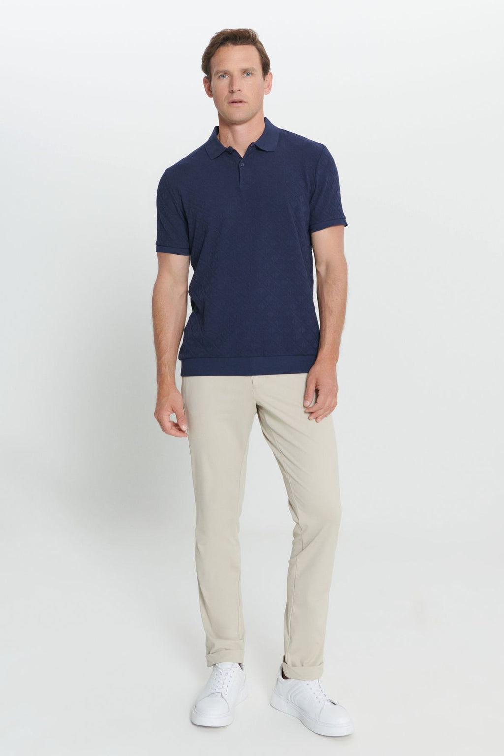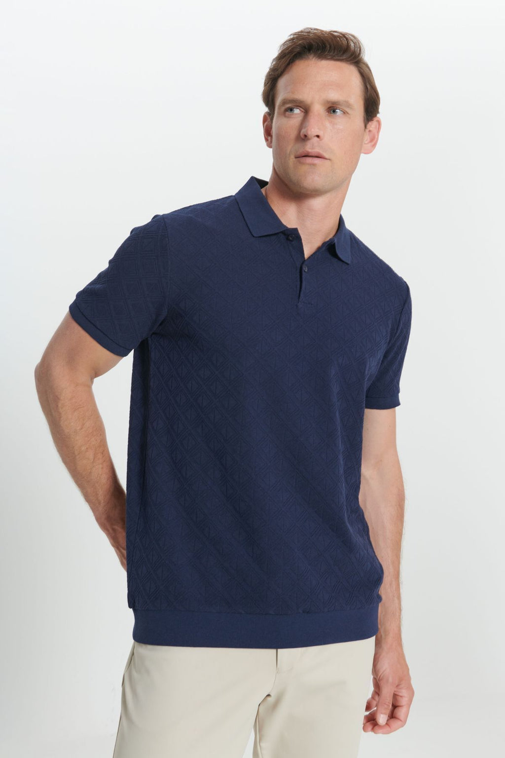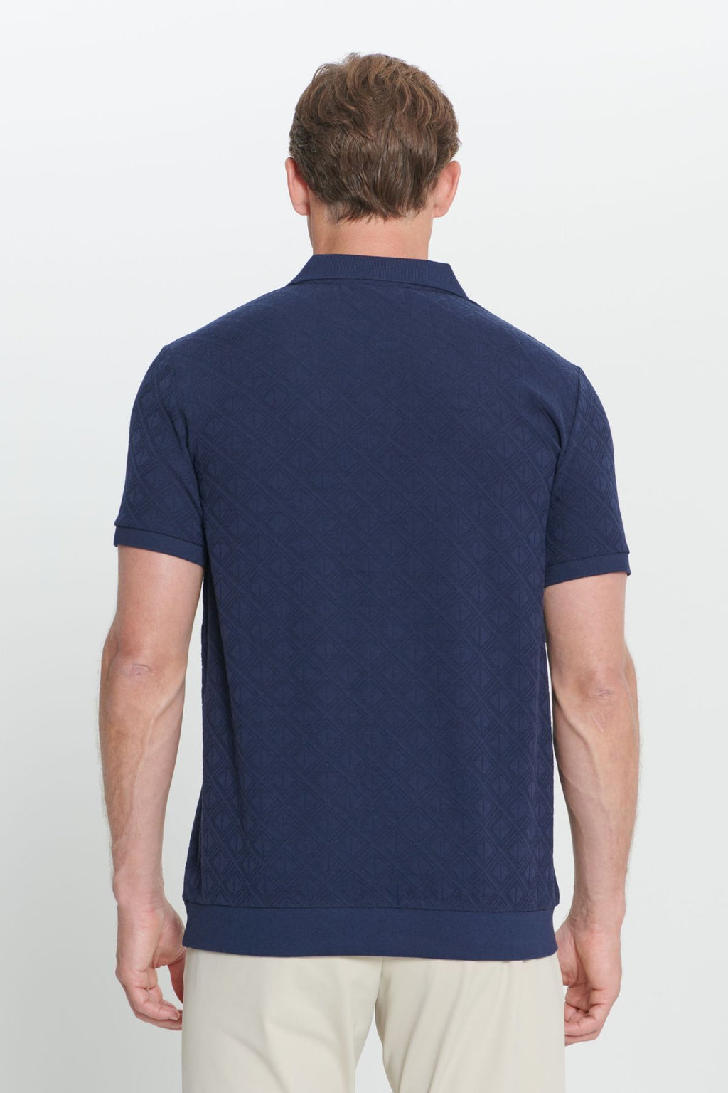 Men's Indigo Standard Fit Normal Cutter Cotton Baklava Patterned Polo Yaka T -shirt