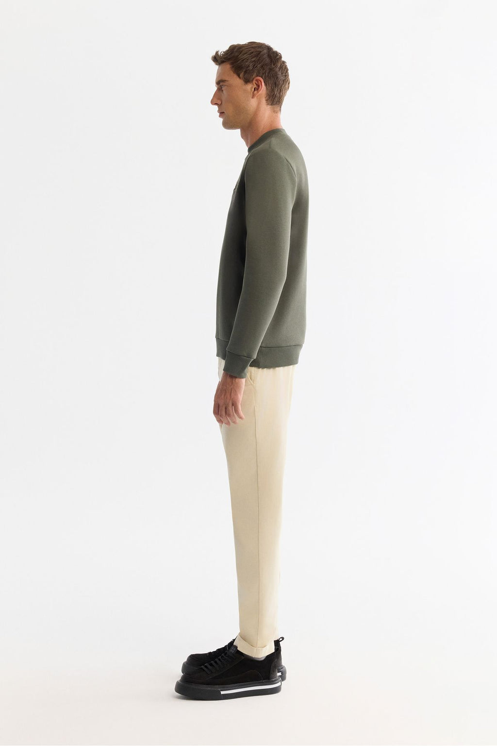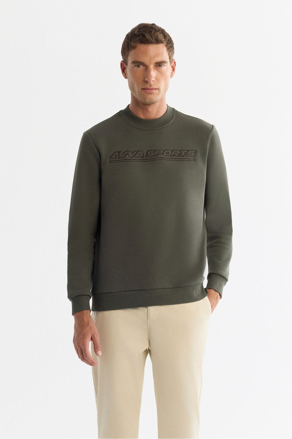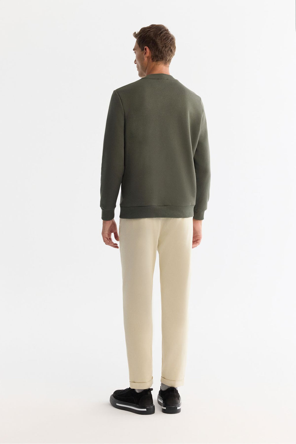 Men's Khaki Bicycle Collar 3 -IP Cotton Printed Sweatshirt A42y1306
