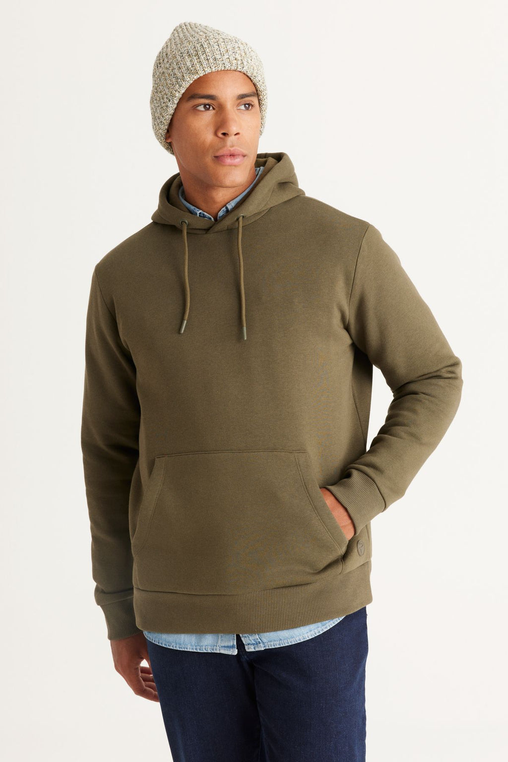 Men's Khaki-Black Cotton Cotton Lower 2 Piece Hooded Kangaroo Pocket Standard Fit Normal Cutting