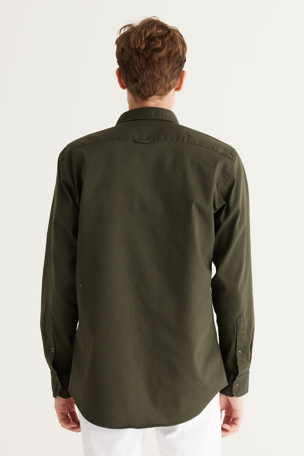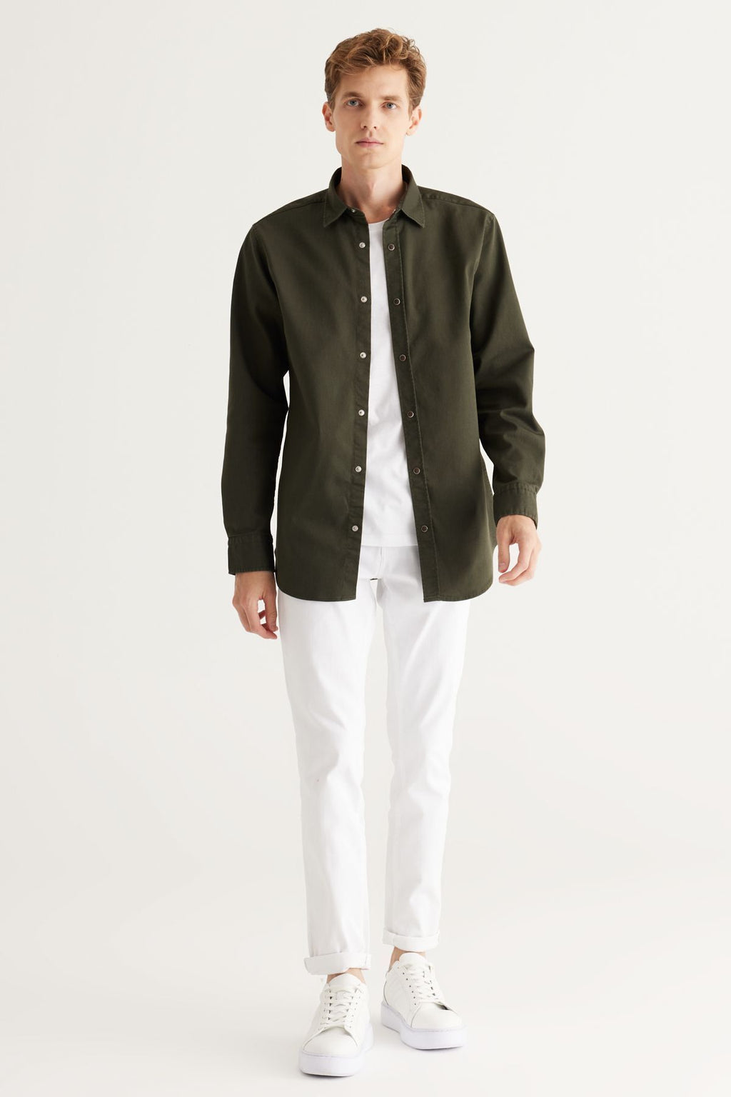 Men's Khaki Comfort Fit Casual Cut Cotton Diagonal Patterned Shirt