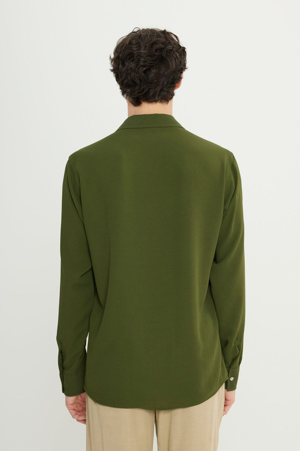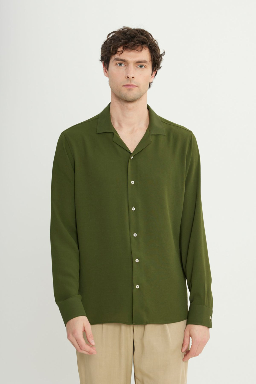 Men's Khaki Comfort Fit comfortable cut hawai collar jacquard shirt
