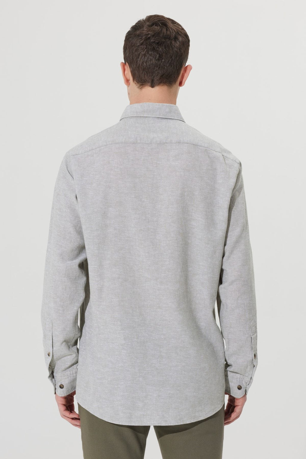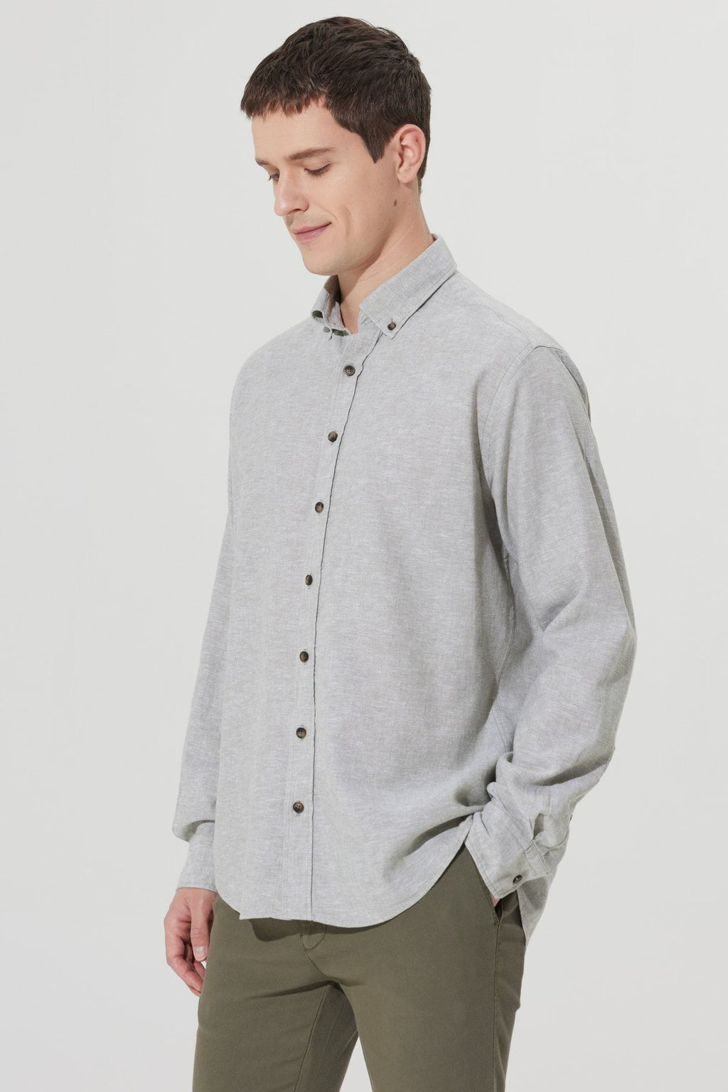 Men's Khaki Linen Comfort Fit Casual Cutting buttoned collar shirt