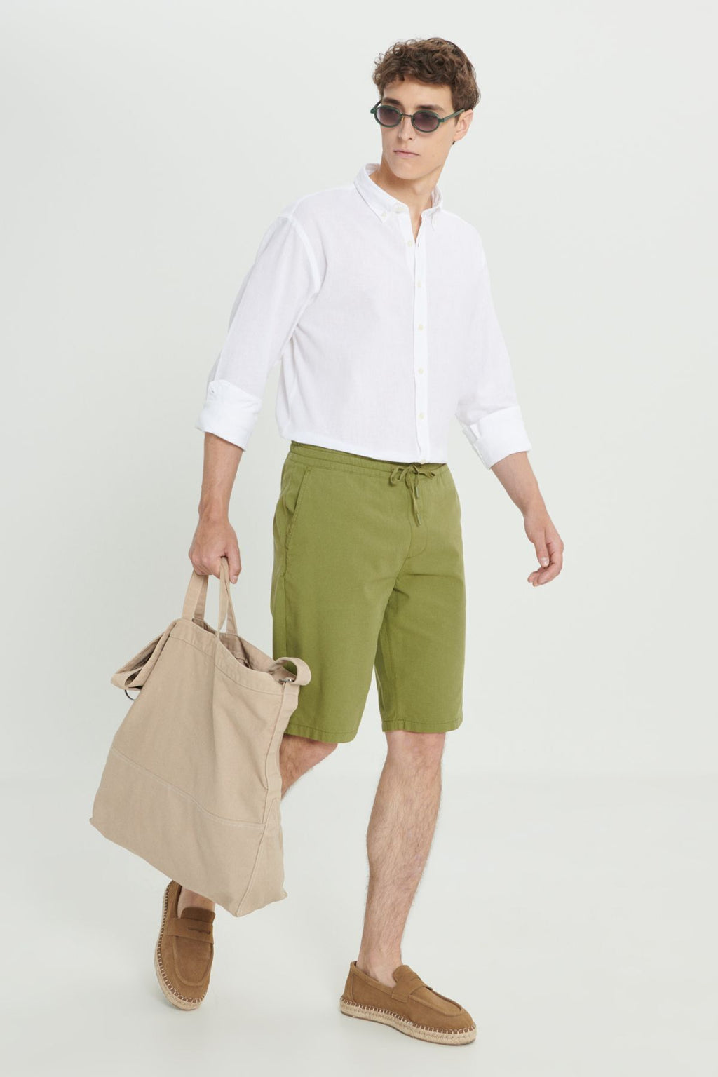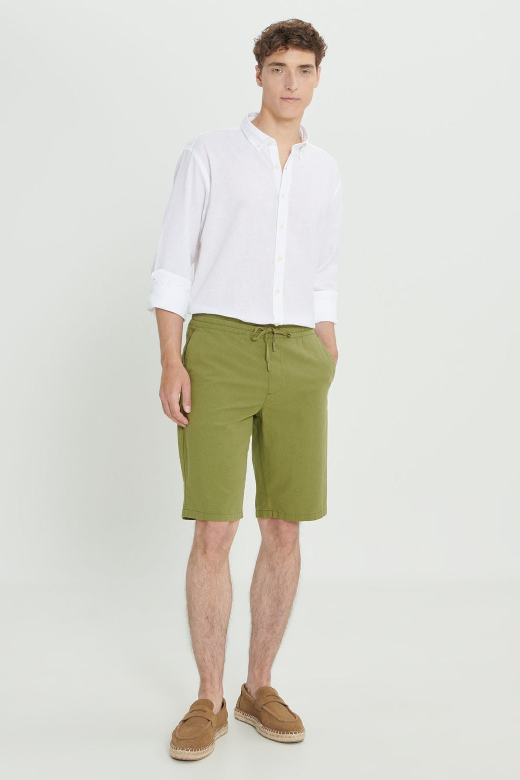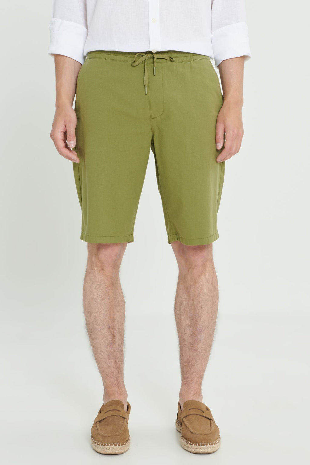 Men's Khaki Linen Comfort Fit Casual Cutting Side Pocket Shorts