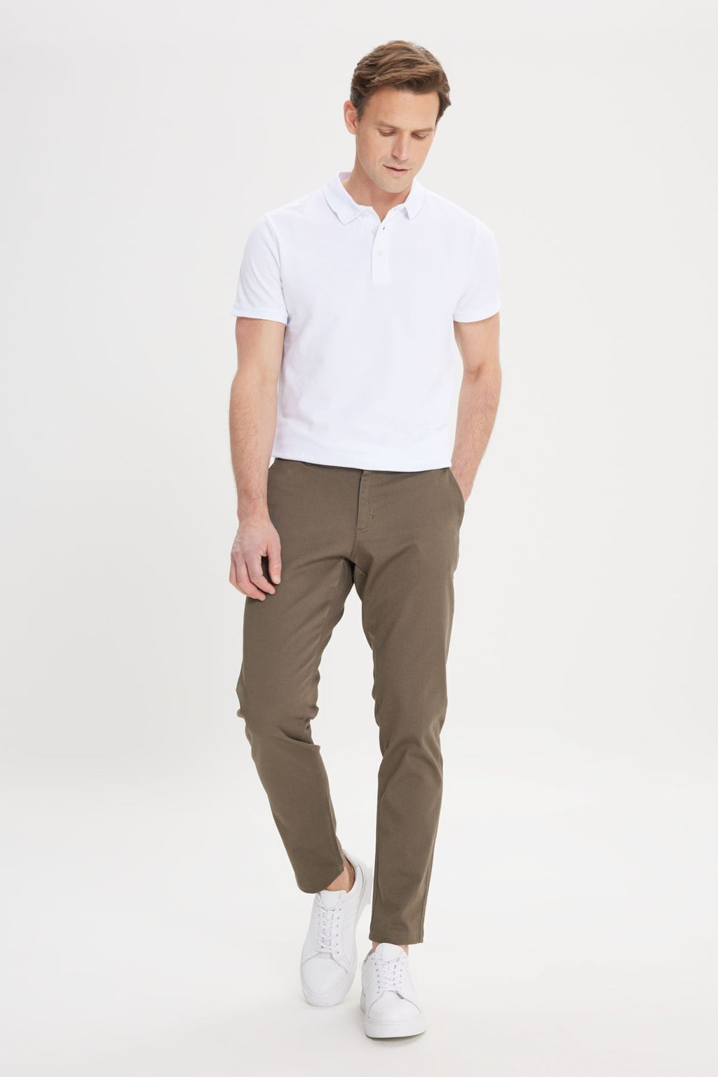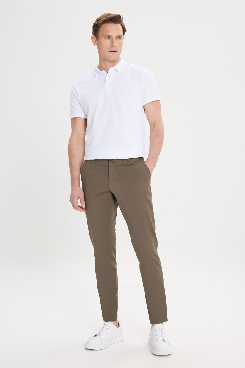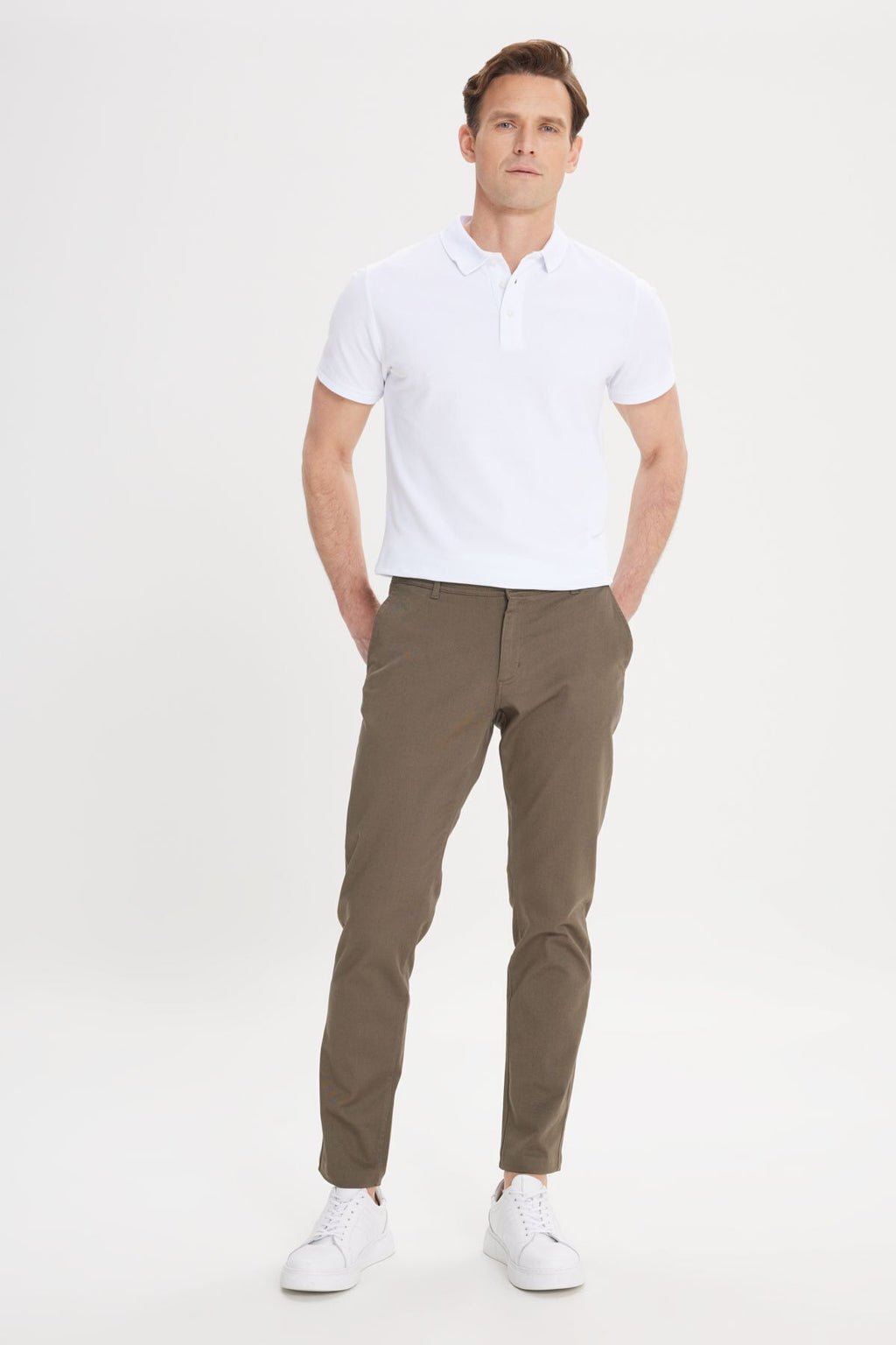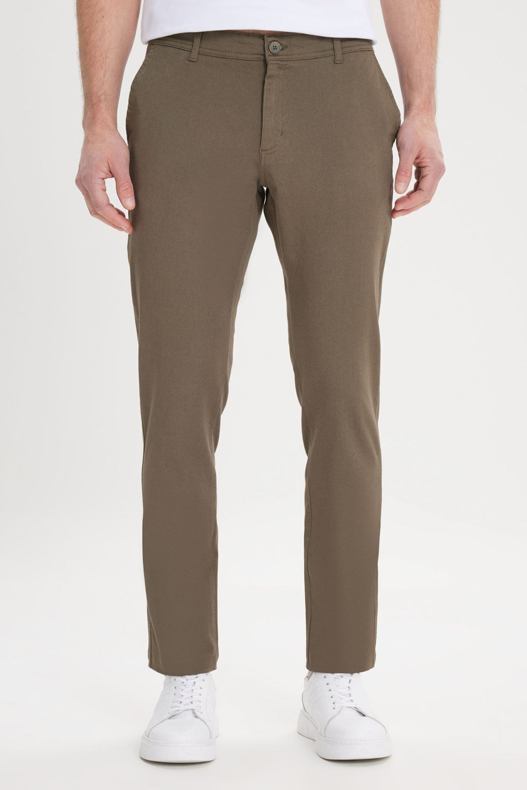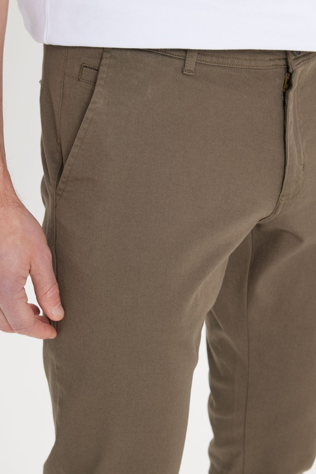 Men's Khaki Slim Fit Narrow Cut Cotton Side Pocket Flexible Chino Pants