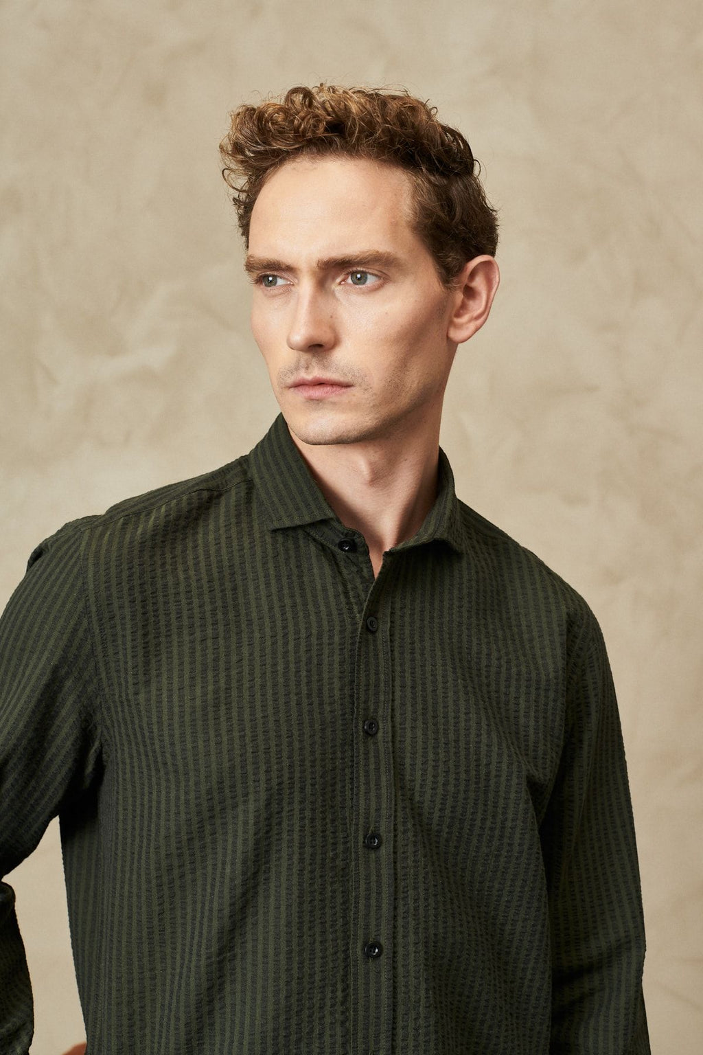 Men's Khaki Slim Fit Narrow Cutting Italian collar 100 %Cotton Wafer Shirt