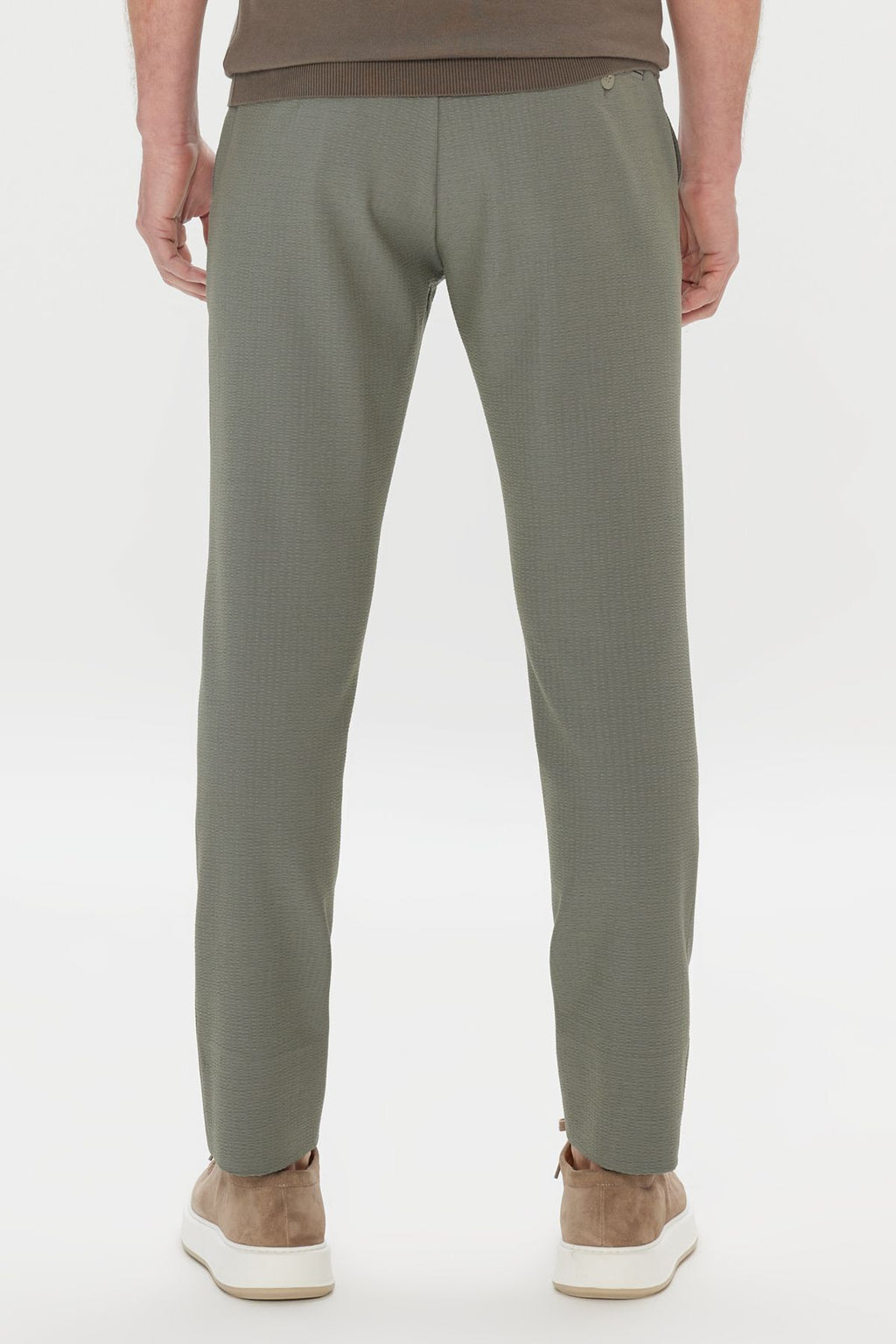 Men's Khaki Slim Fit Narrow Cutting Waist Locks Side Pocket Wafer Patterned Pants
