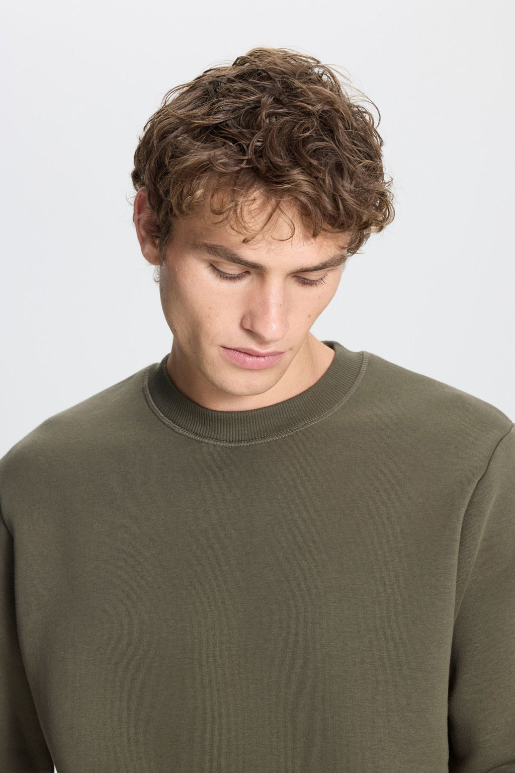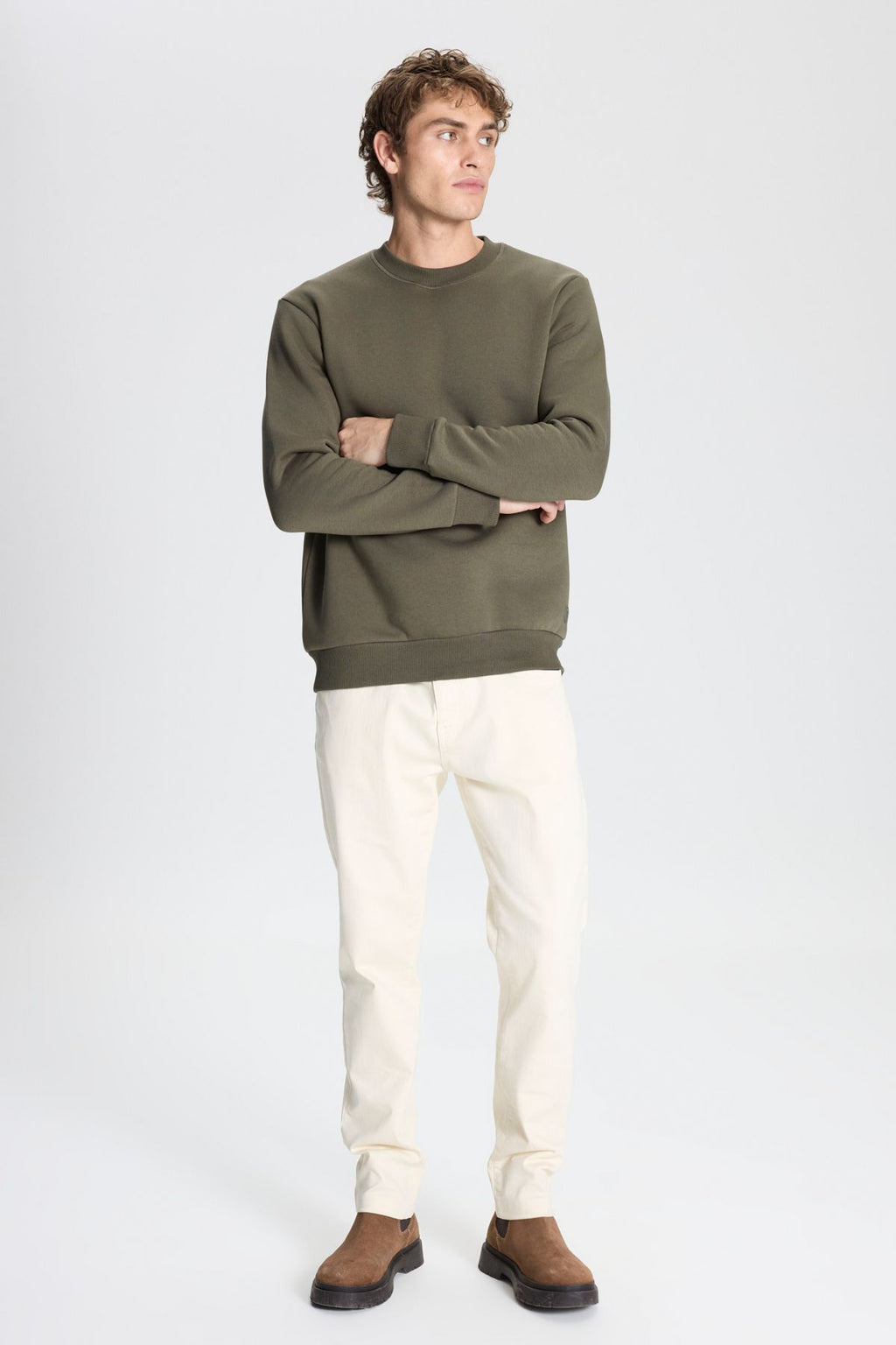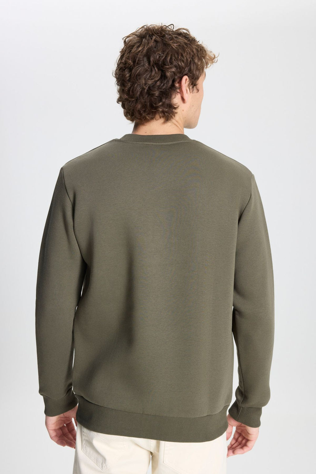 Men's Khaki Standard Fit Normal Cut Içi Polar 3 IP Bicycle collar Cotton Sweatshirt