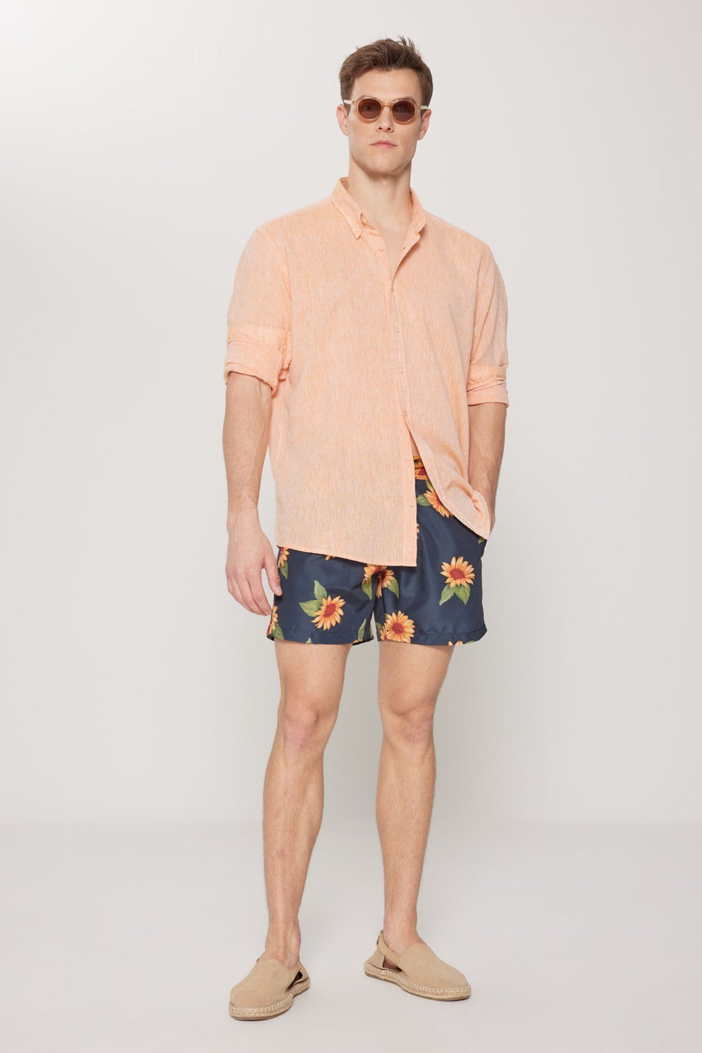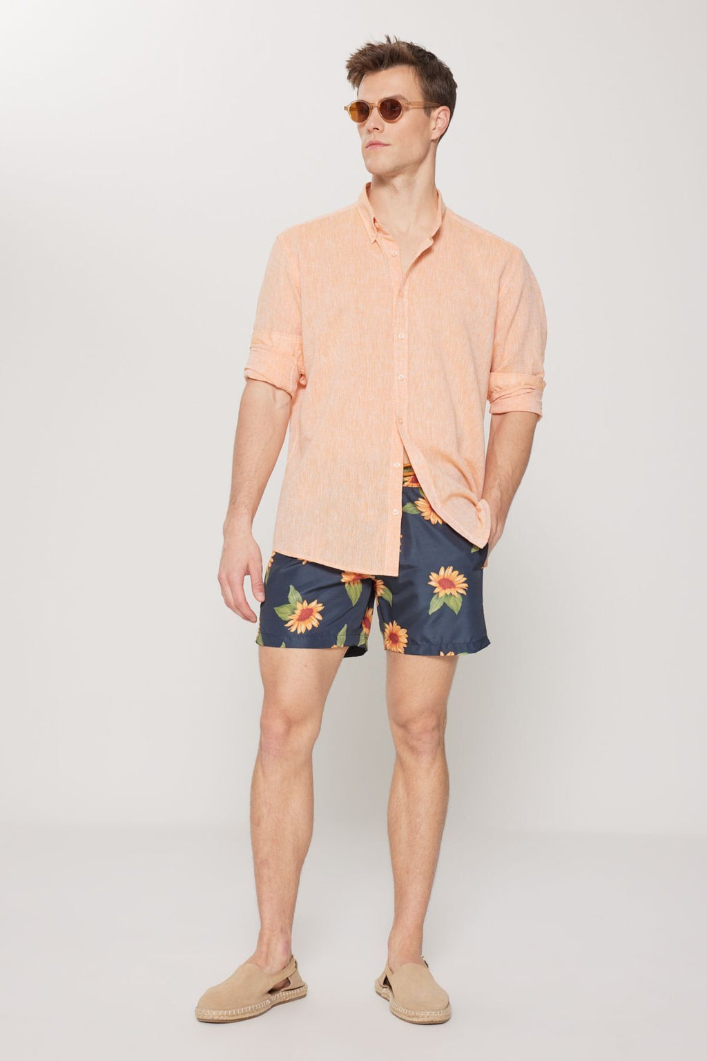 Men's Khaki Standard Fit Normal Cutting Pocket Fast Drying Patterned Sea Short