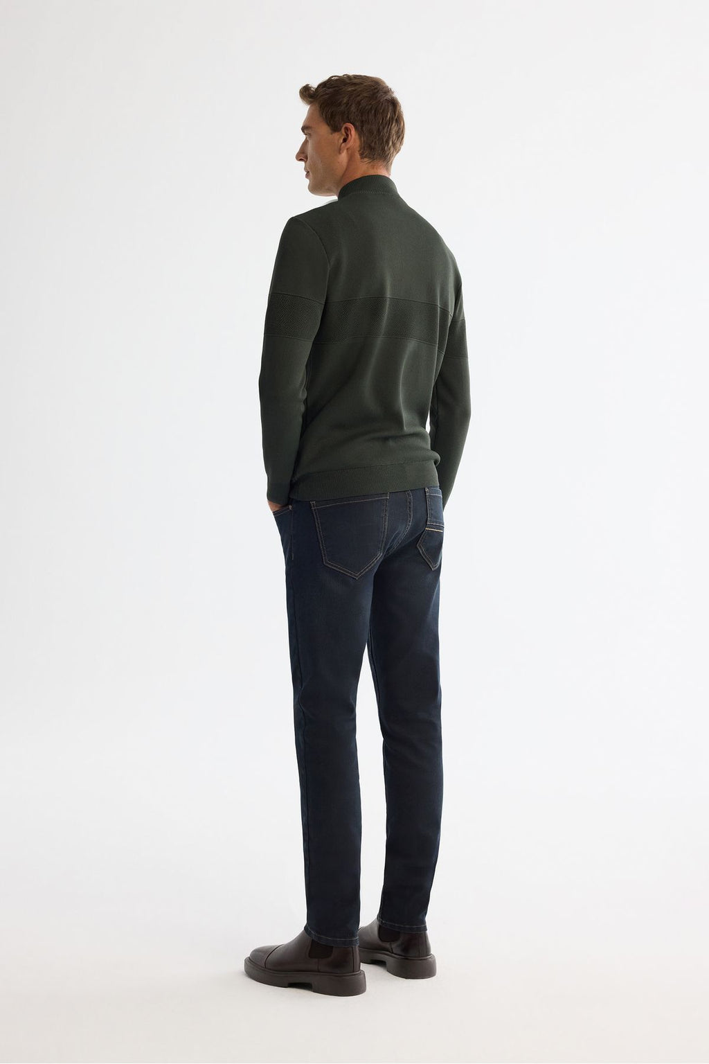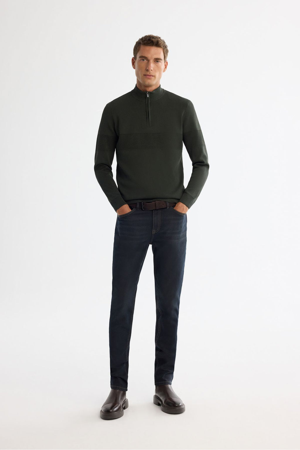 Men's Khaki Zippered upright collar front tissue detailed knitwear sweater A42Y5031
