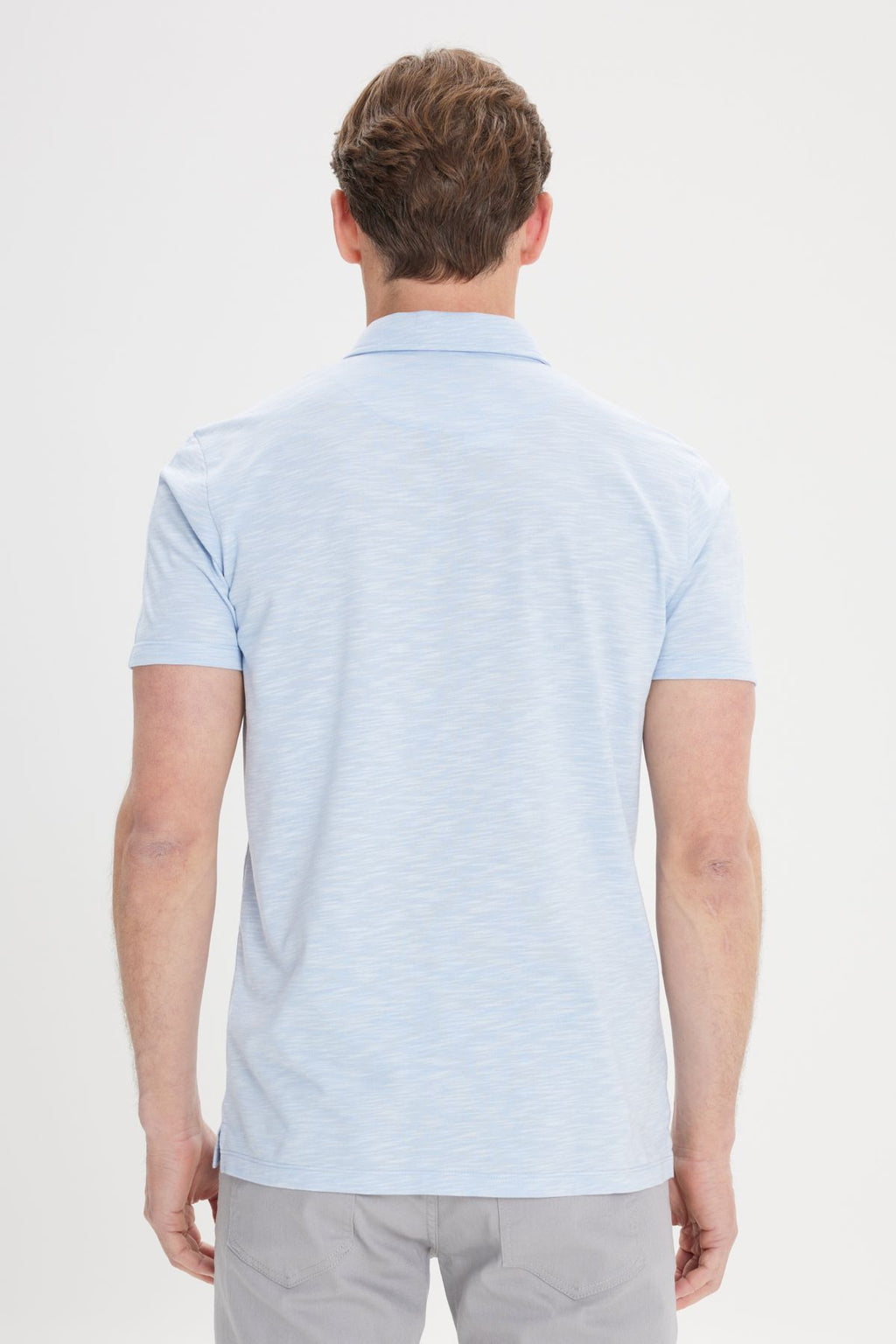 Men's light blue cotton jacquard slim fit narrow cut polo collar t -shirt