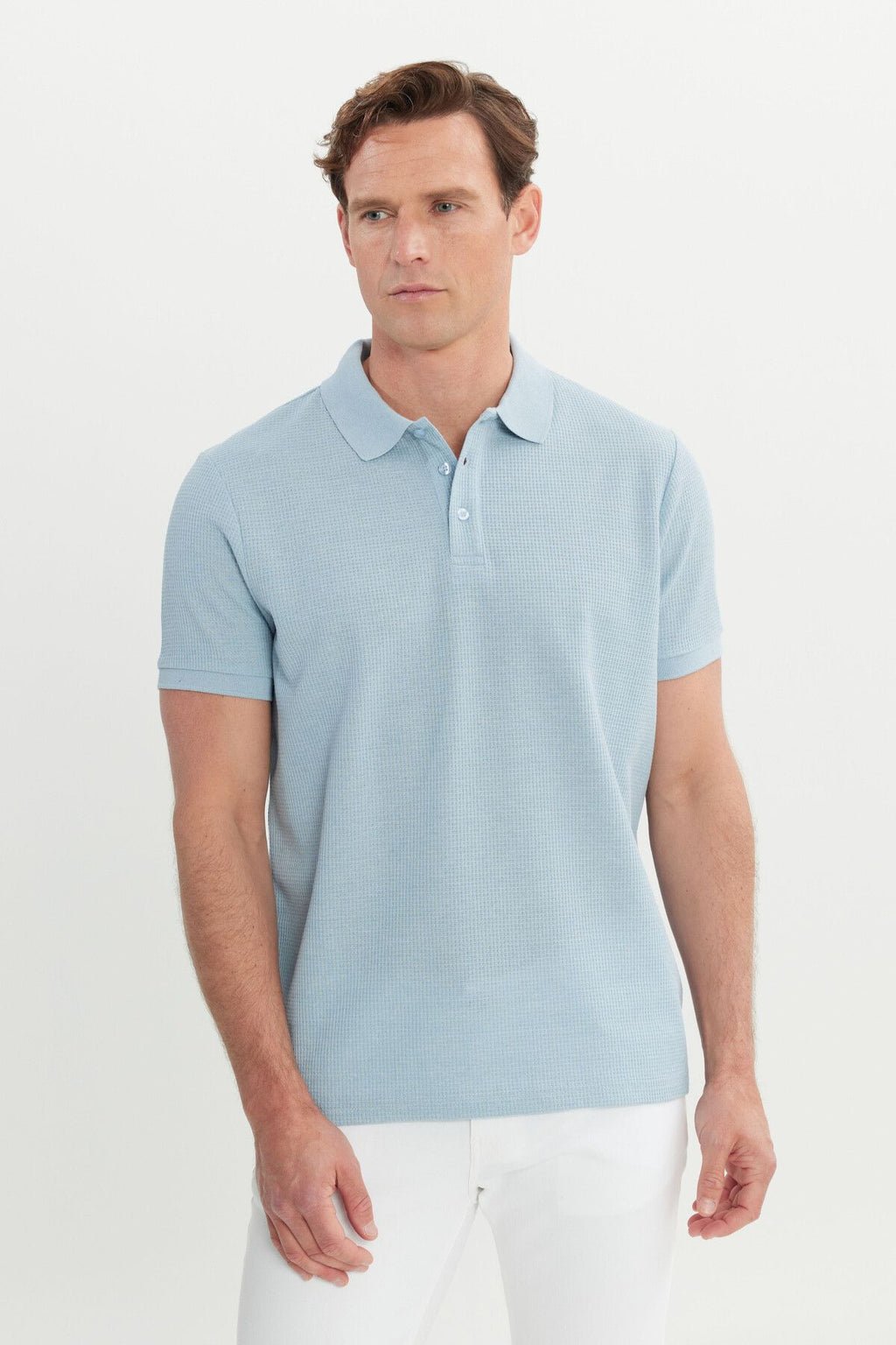 Men's Light Blue Cotton Standard Fit Normal Cut Patterned Polo Yaka T -shirt