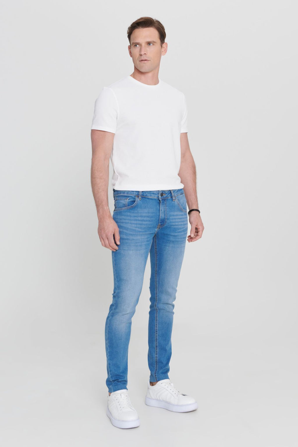 Men's Light Blue Extra Slim Fit Num Cut Riss Cotton Flexible Denim Jean Jeans