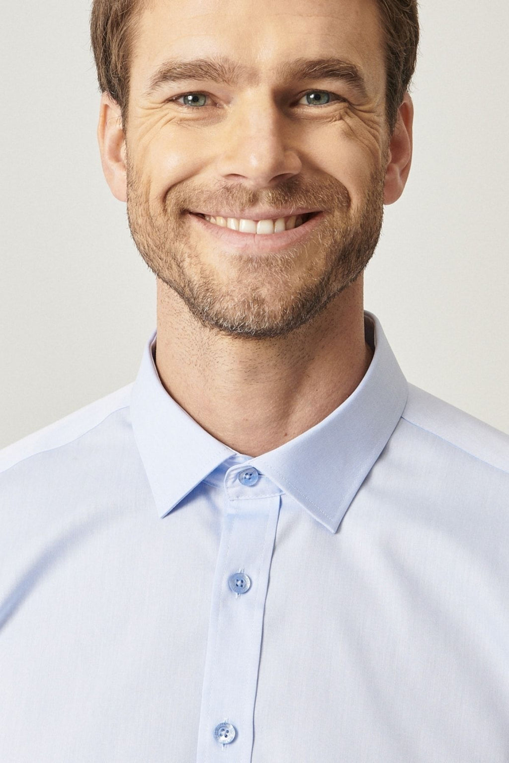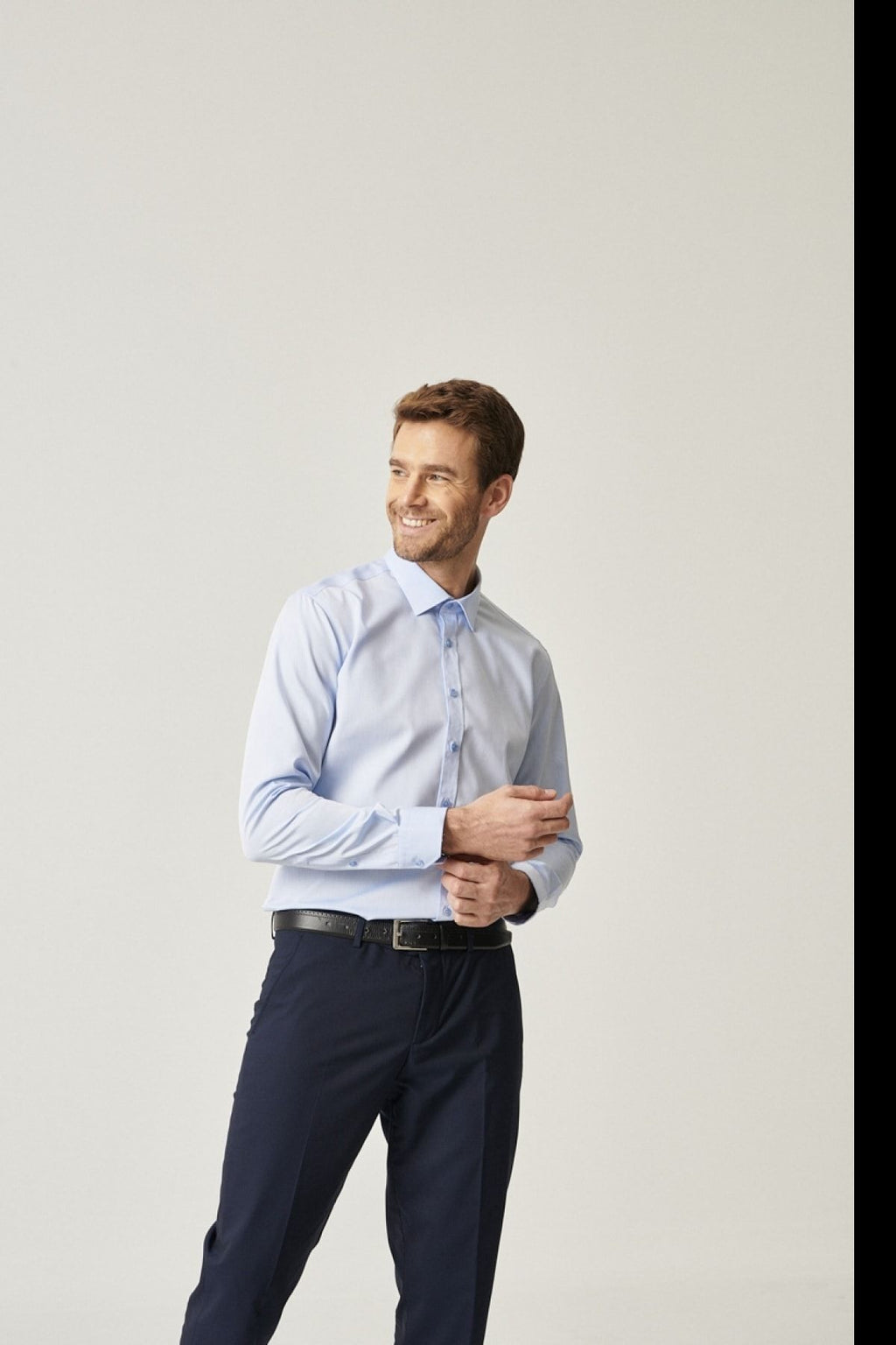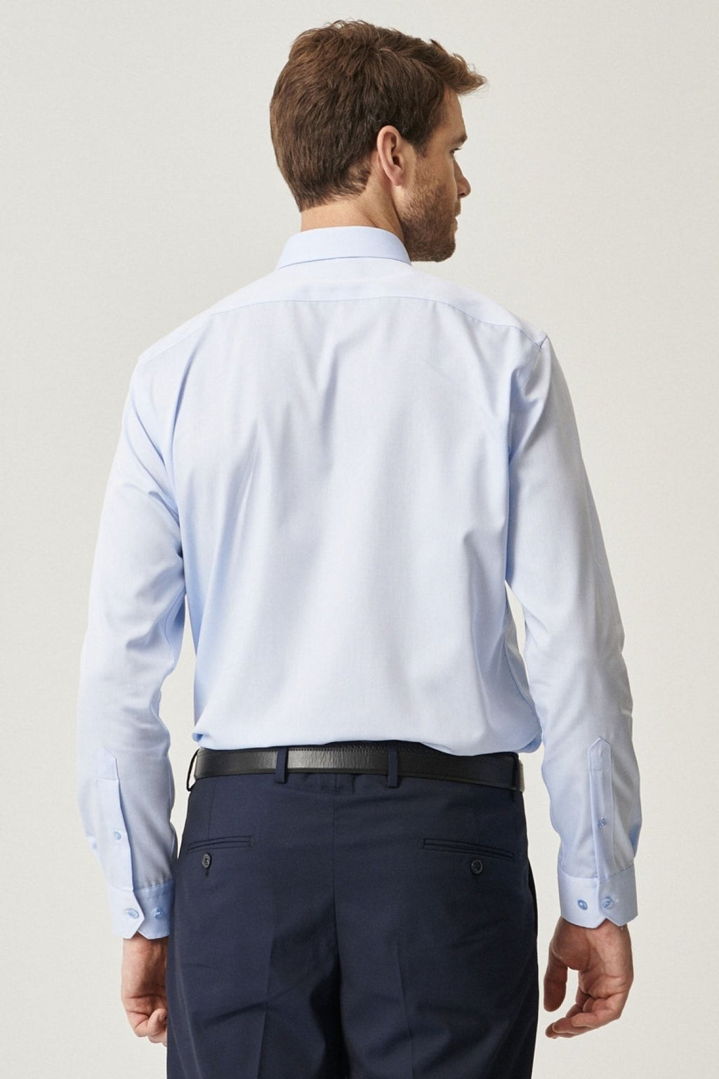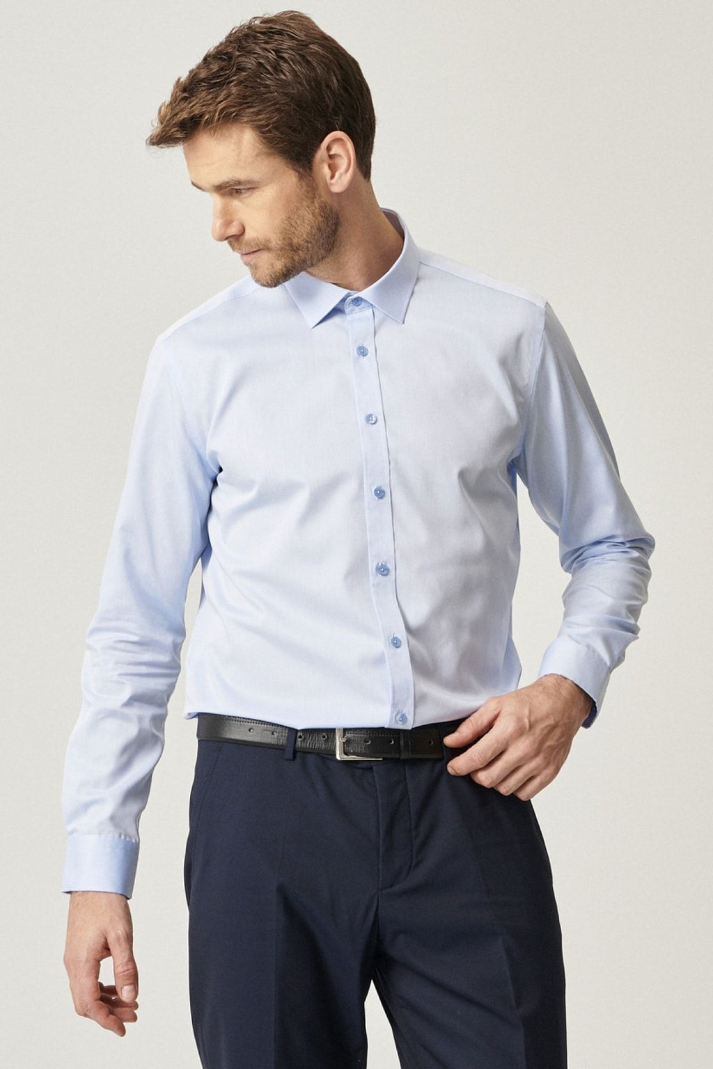 Men's light blue ironing non-one slim fit narrow cut 100 %cotton shirt