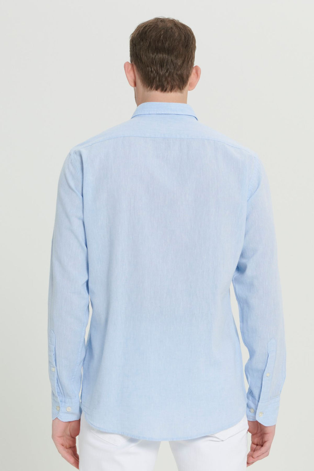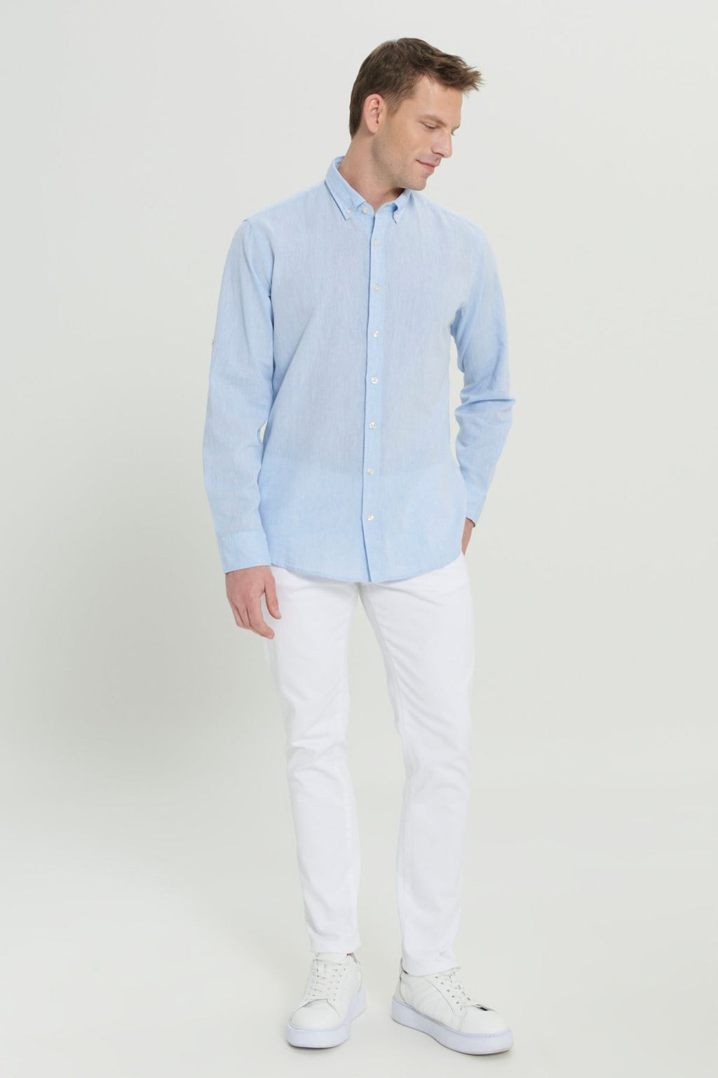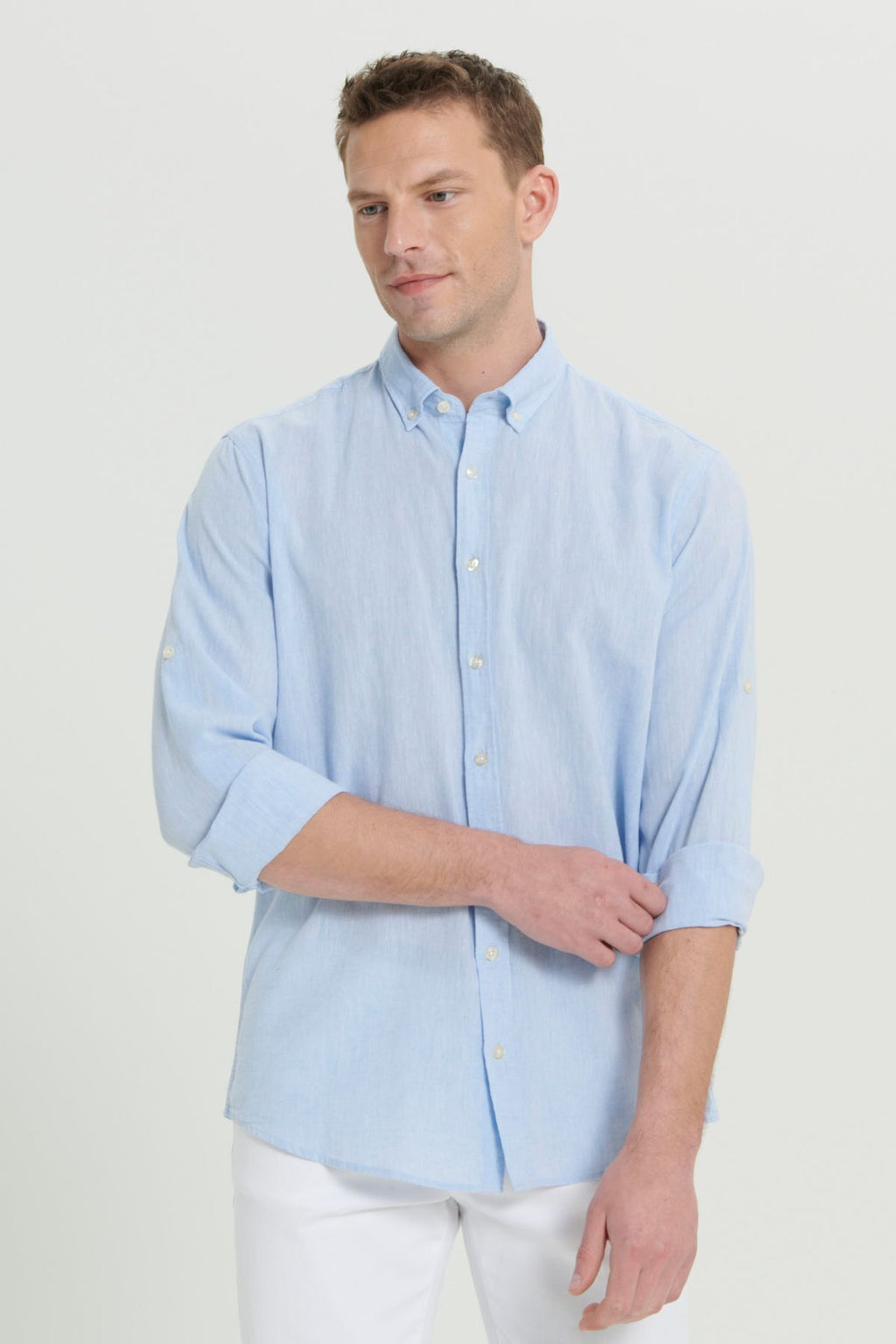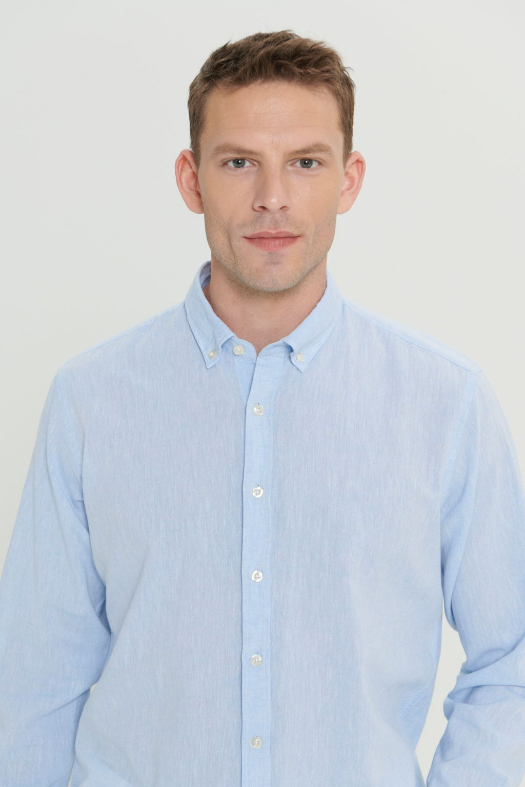 Men's light blue linen comfort fit comfortable cut buttoned collar casual shirt