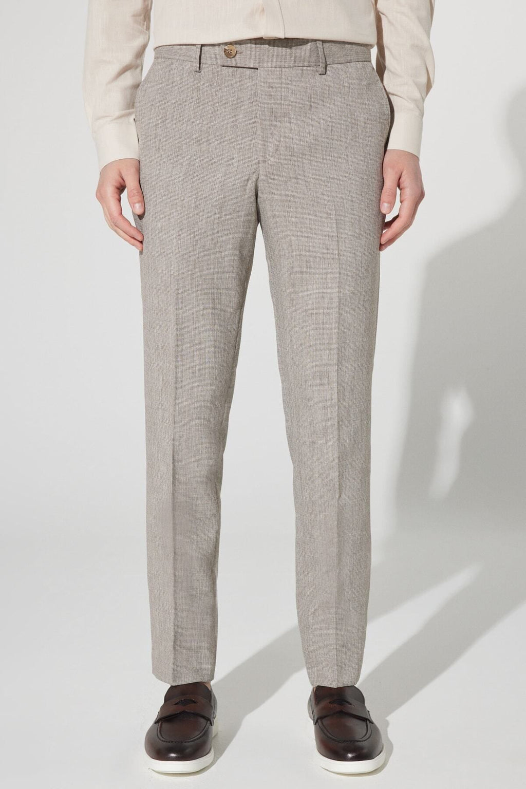 Men's light brown slim fit narrow cut -off swallow collar patterned suit
