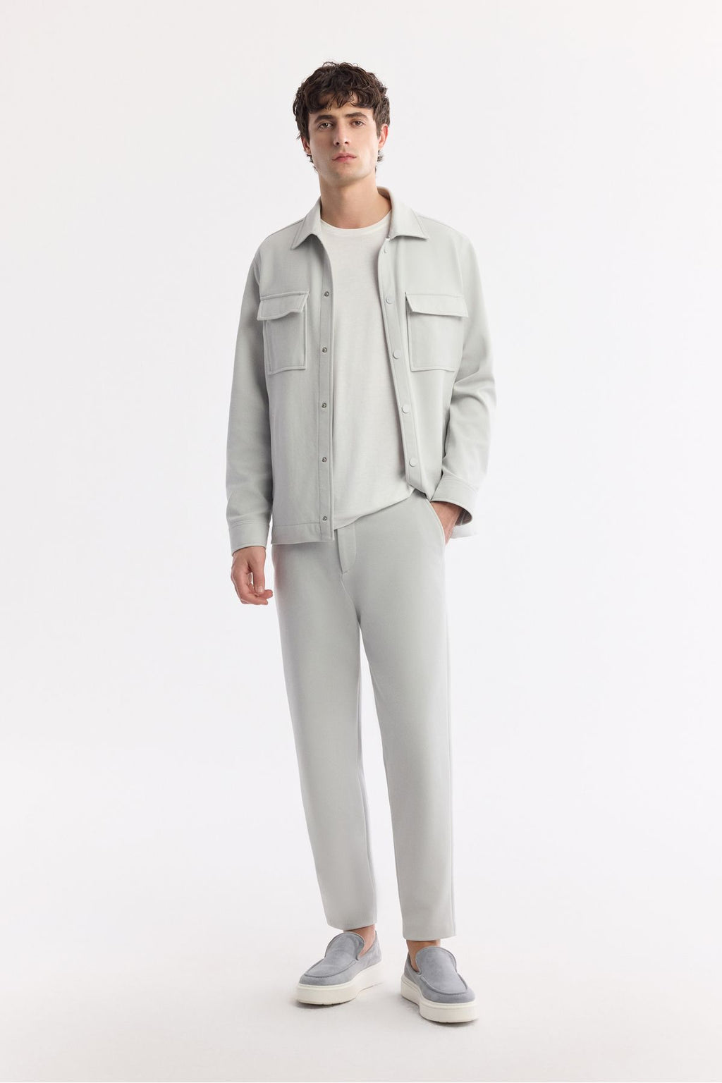 Men's Light Gray Classic Waist Knitting Diagonal Pedasa Carrot Fit Pants A51y3013